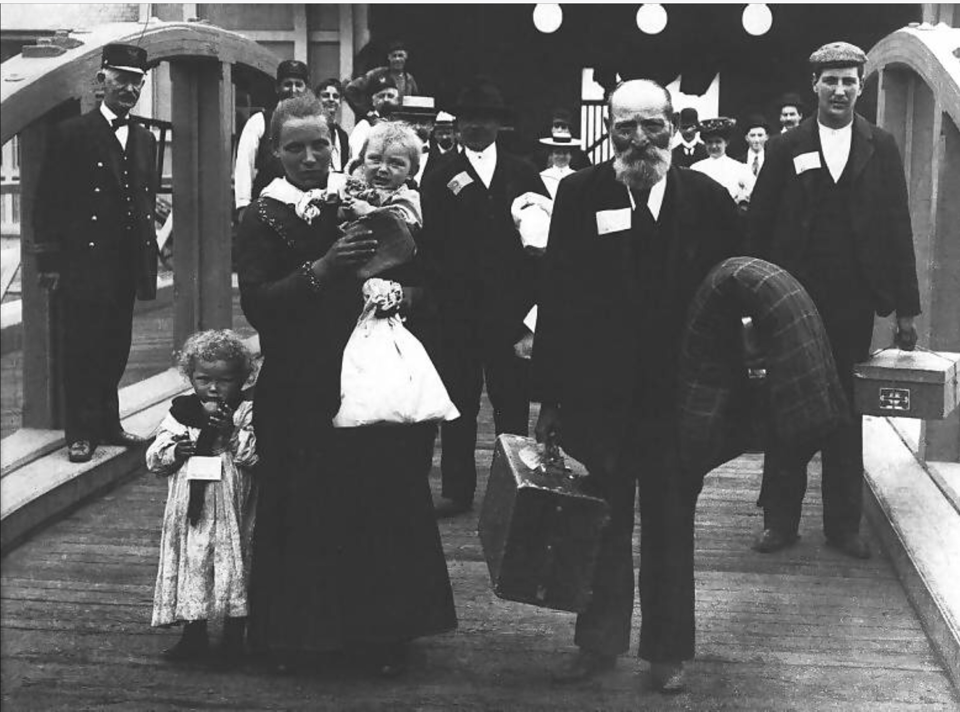 After an arduous sea voyage, many passengers described their first glimpse of New Jersey, while third-class or steerage passengers lugged their possessions onto barges that would take them to Ellis Island. Immigrants were tagged with information from the ship’s registry and passed through long lines for medical and legal inspections to determine if they were fit for entry into the United States. From 1900 to 1914–the peak years of Ellis Island’s operation–some 5,000 to 10,000 people passed through the immigration station every day. Approximately 80 percent successfully passed through in a matter of hours, but others could be detained for days or weeks. Many immigrants remained in New York, while others traveled by barge to railroad stations in Hoboken or Jersey City, New Jersey, on their way to destinations across the country. http://www.history.com/topics/ellis-island