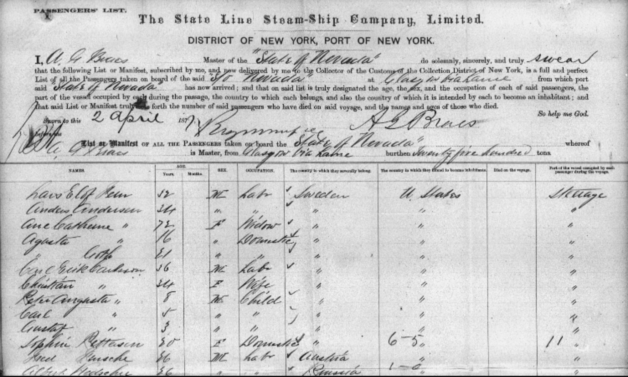 The First Arrival: On January 1, 1892–her 15th birthday–Annie Moore from County Cork, Ireland, became the first person admitted to the new immigration station on Ellis Island. On that opening day, she received a greeting from officials and a $10.00 gold piece. Annie traveled to New York with her two younger brothers on steerage aboard the S.S. Nevada, which left Queenstown (now Cobh) on December 20, 1891 and arrived in New York on the evening of December 31. After being processed, the children were reunited with their parents, who were already living in New York.http://www.history.com/topics/ellis-island