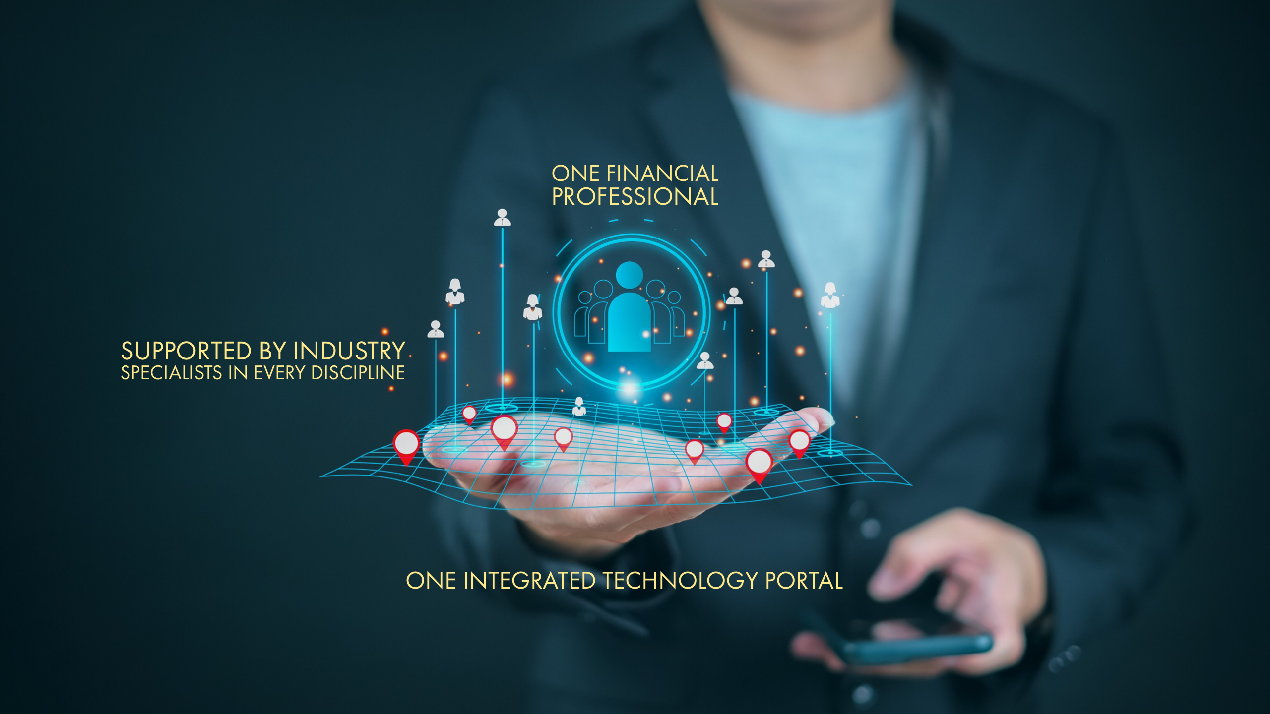 The Solution - A single financial services technology portal and a dedicated financial professional serve as the sole point of contact for all facets of your financial life, streamlining and enhancing financial management for both individual clients and businesses.