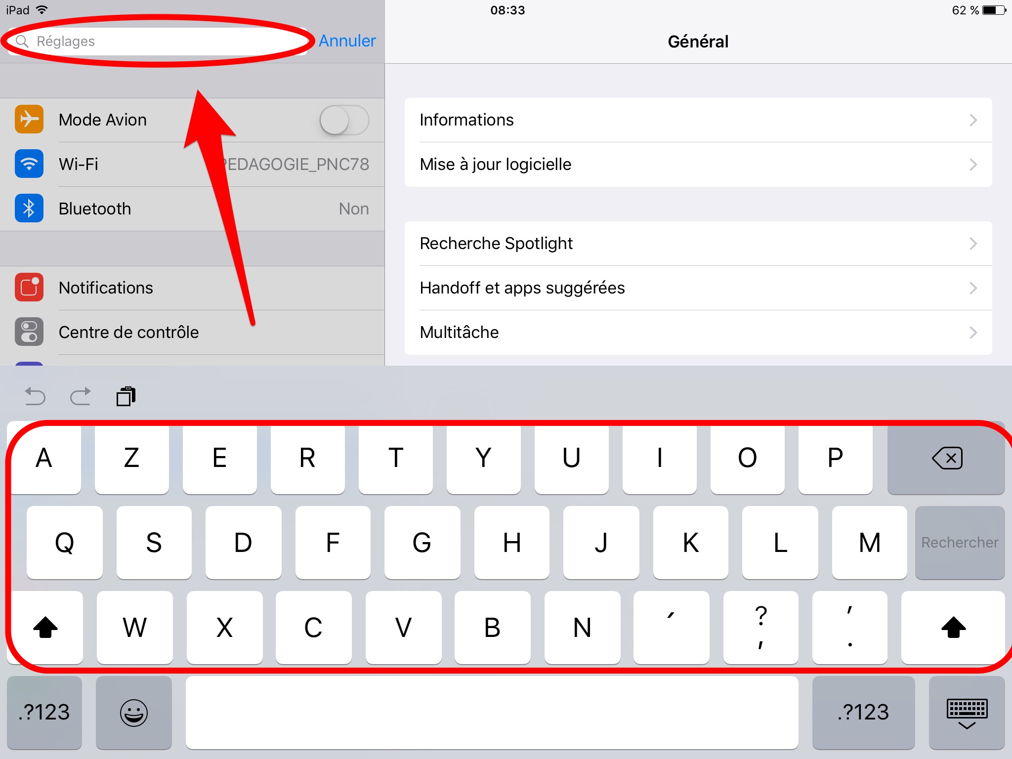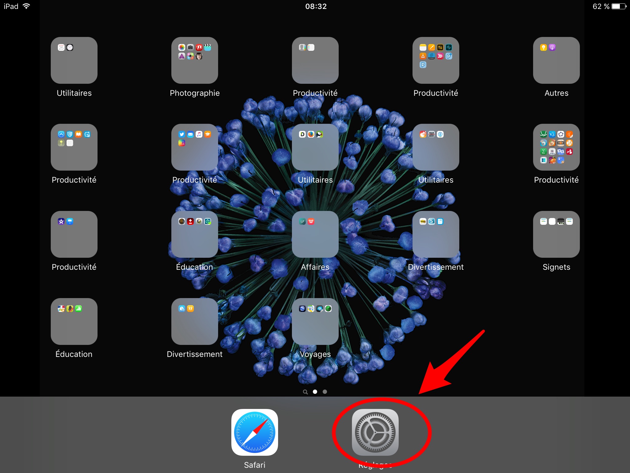 Sur l'iPad, cliquer sur "Réglages"