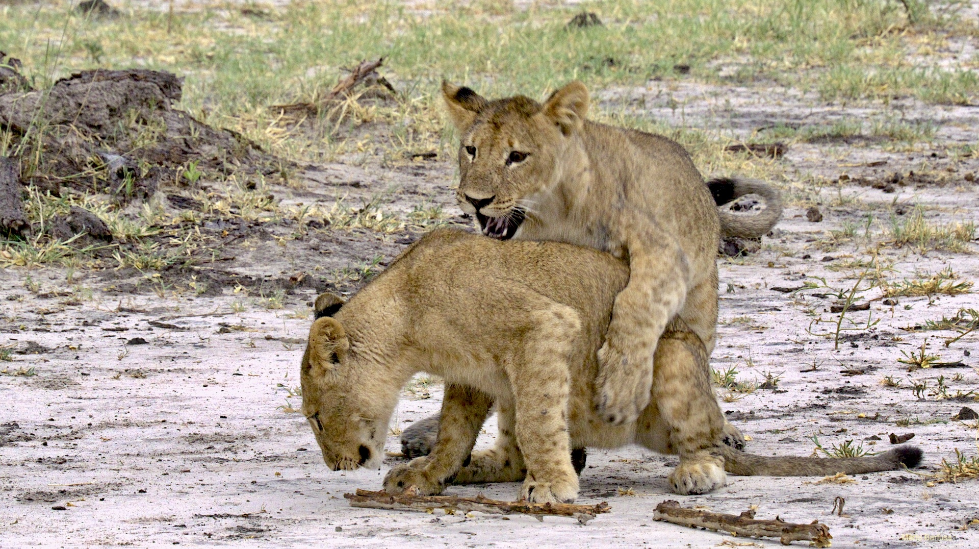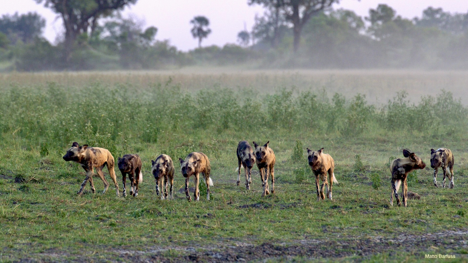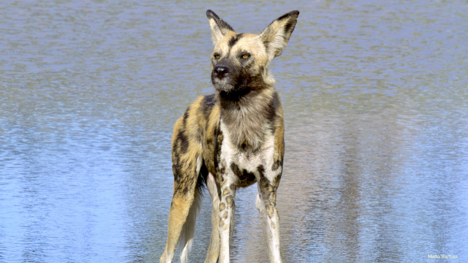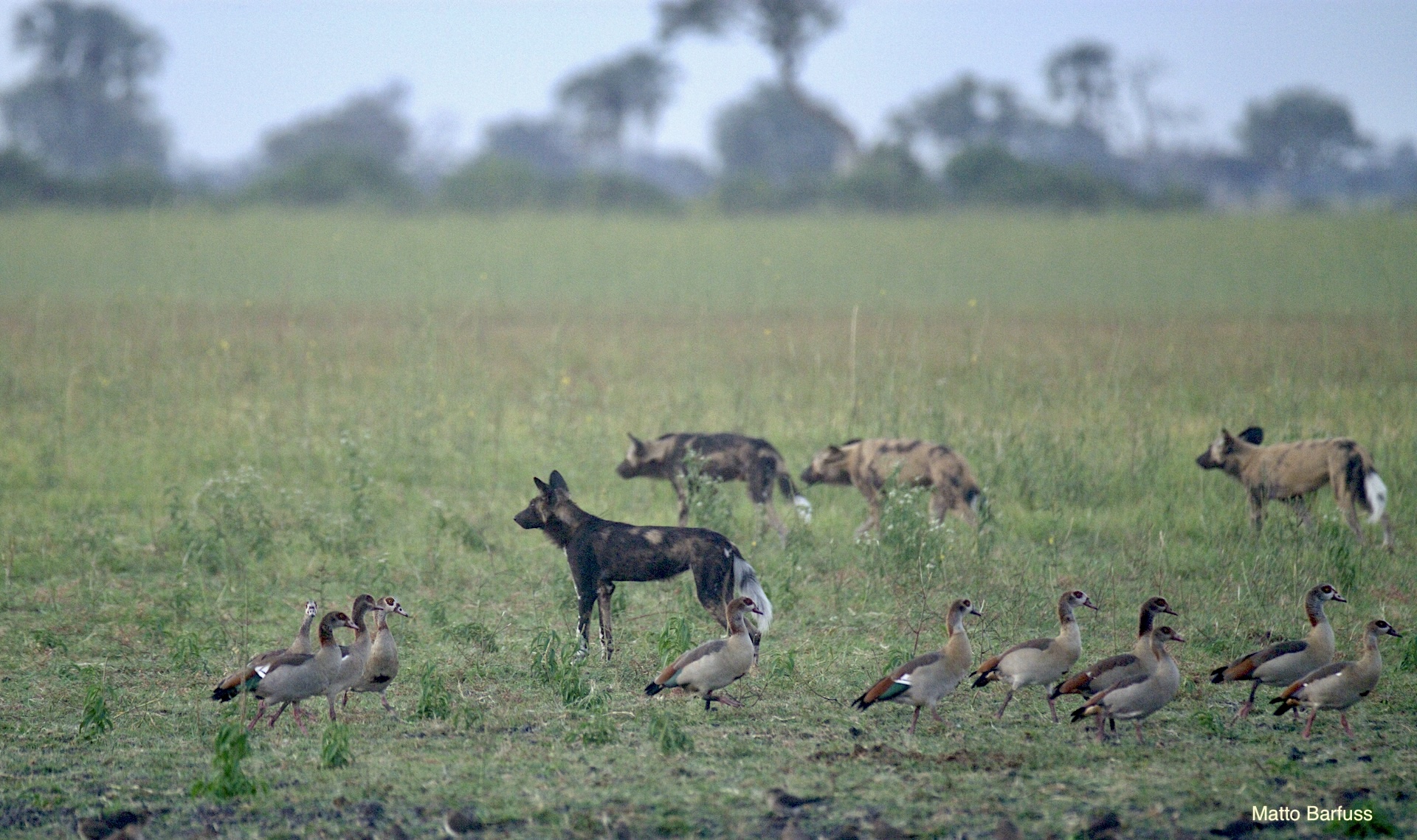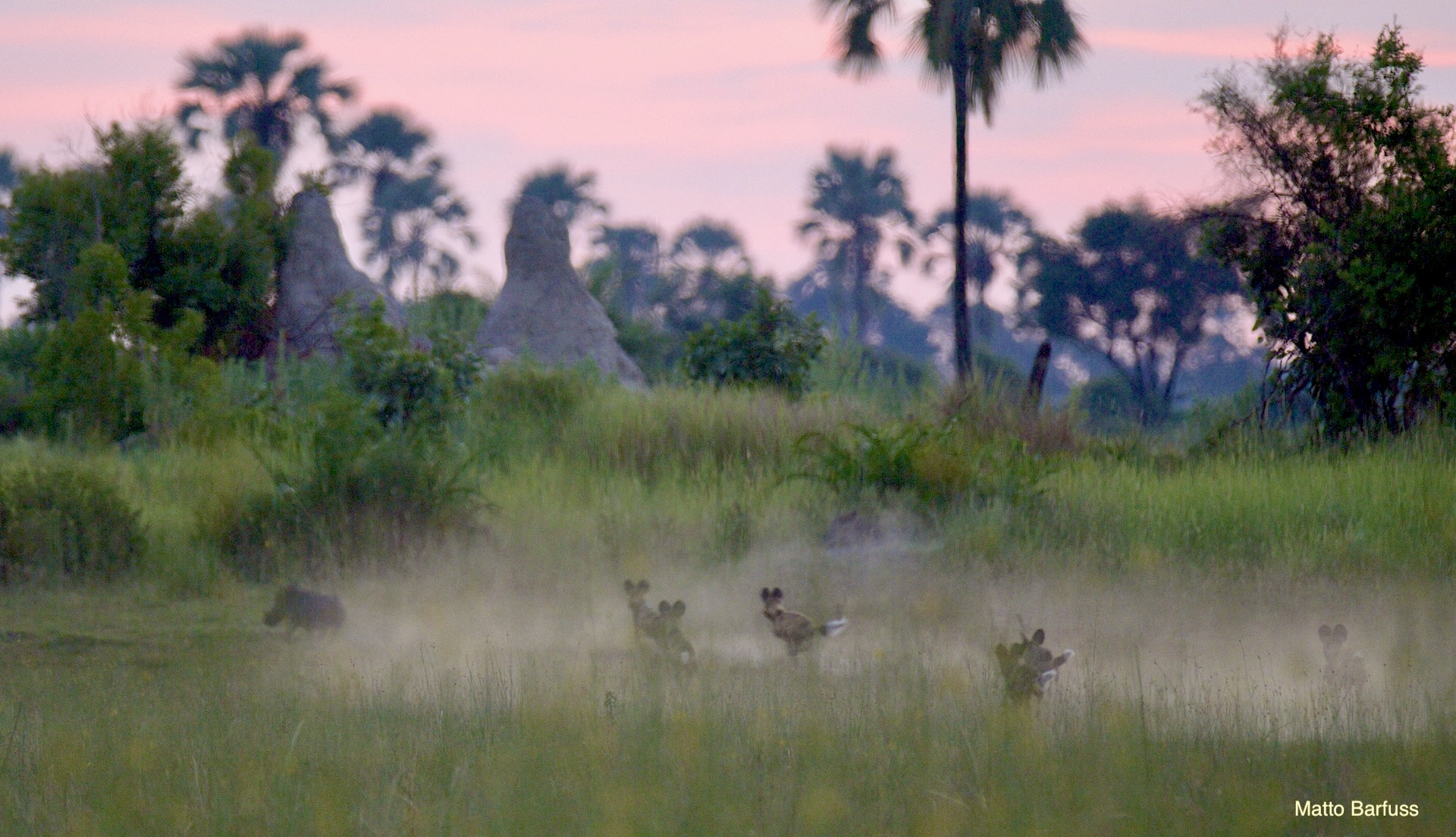 Dieses Krokodil hat schlicht seinen Tümpel an ‚Sonne&Hitze‘ verloren. Kein Problem. Das Krokodil „fährt sein System runter“ und wartet auf bessere Zeiten. Komisch, meinen die Wildhunde. Das Krokodil jedenfalls findet es nicht lustig, von hungrigen Hunden angegafft zu werden.