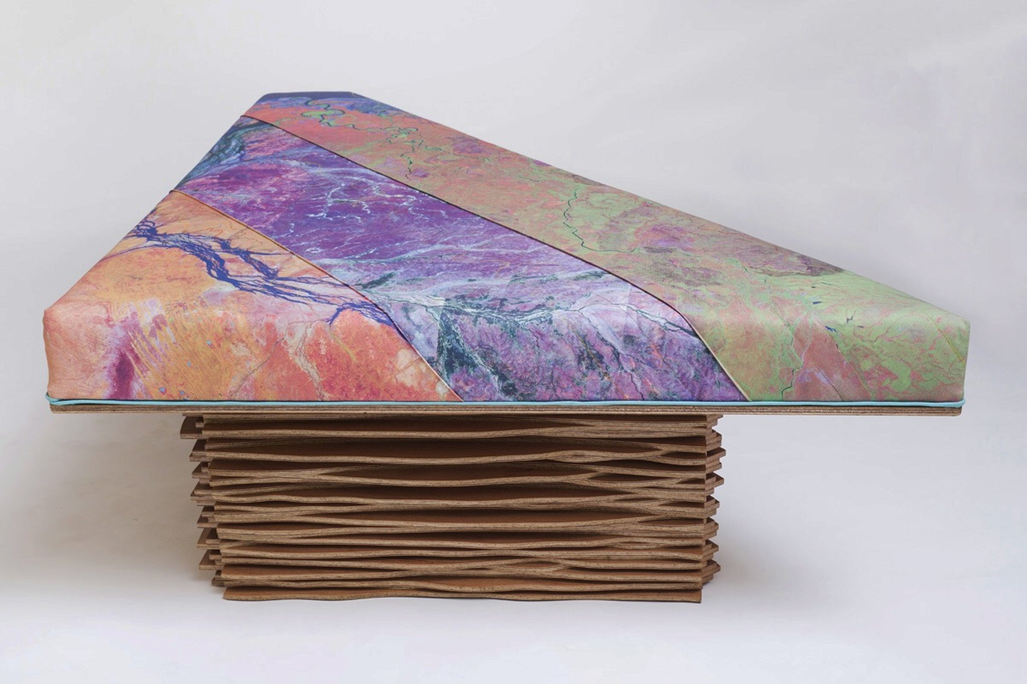 This piece of furniture is constructed from the data of the Remote Sensing Centre of the Ecosciences Precinct, and it was this data which determined the form.