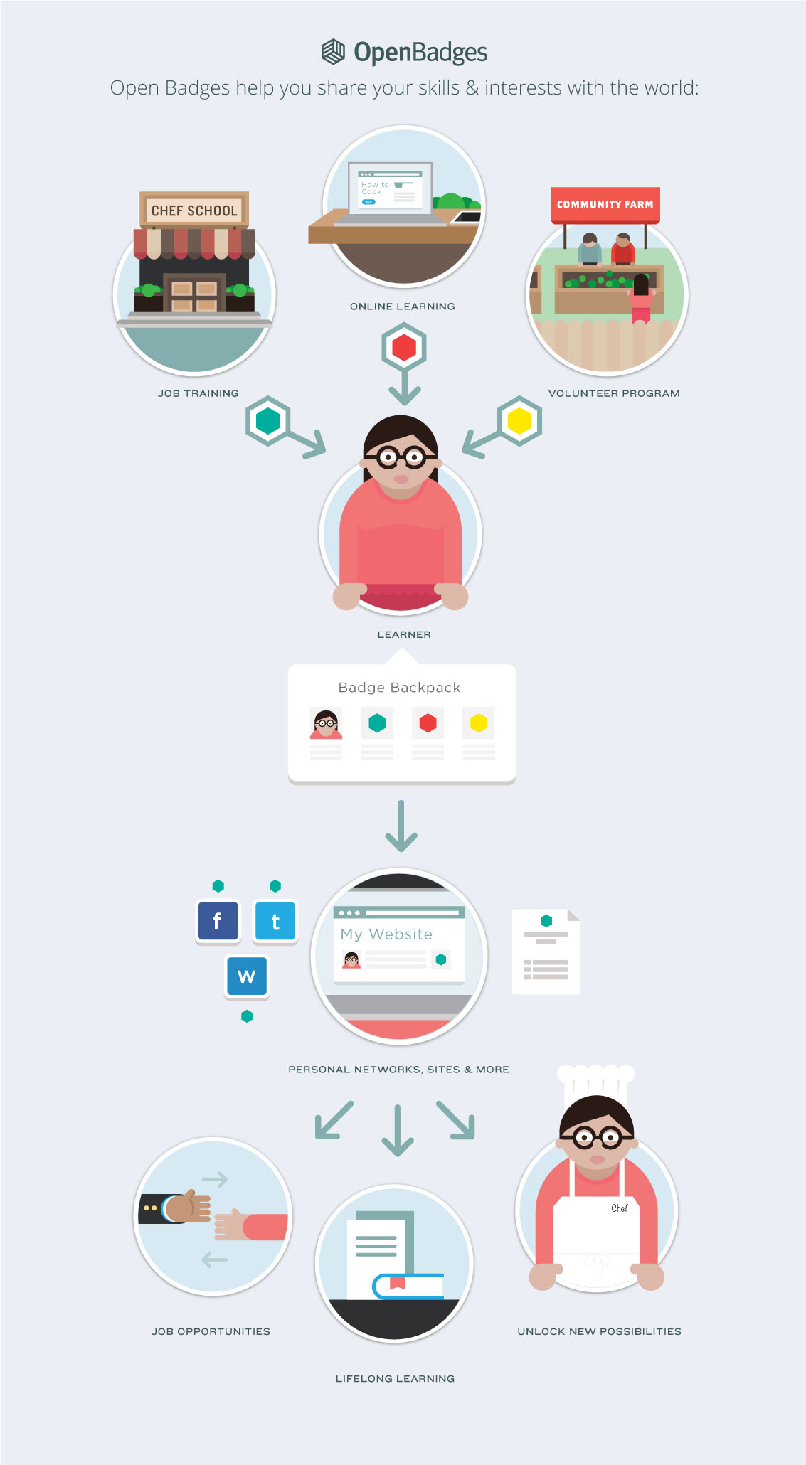 Badges will provide us with data, for example types of activities, skills and evidence of activities around competences. Open Digital Badges are used extensively across the UK to support the recognition of skills within schools, colleges and universities. Employers are increasingly turning to Open Badges as a method of gaining appropriate attention for skills that they see as important for skills that they see as important for their organisations and as mechanism for encouraging interest in their activities, raising awareness of their mission and functions. Large employers are already advertising and using badges.
