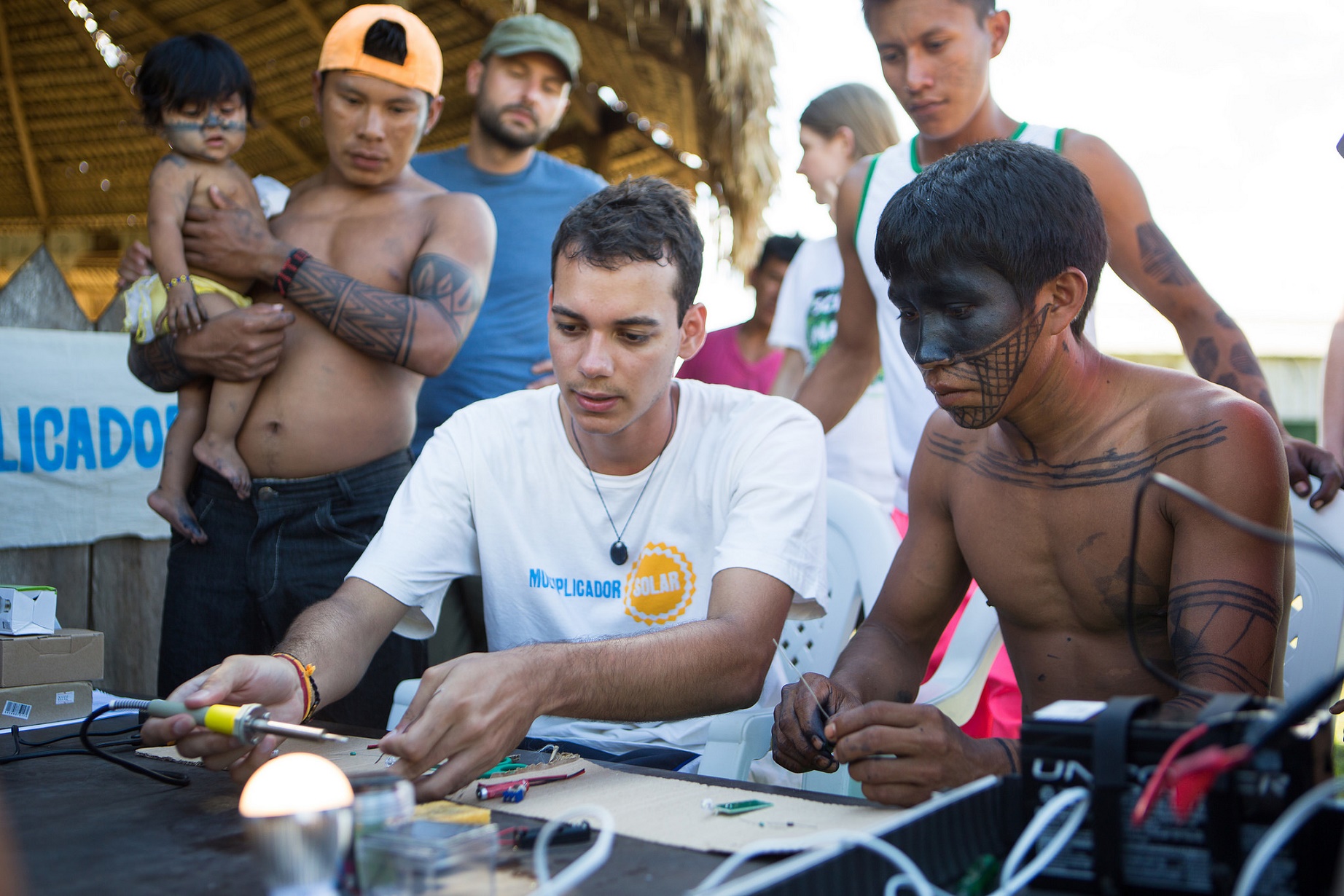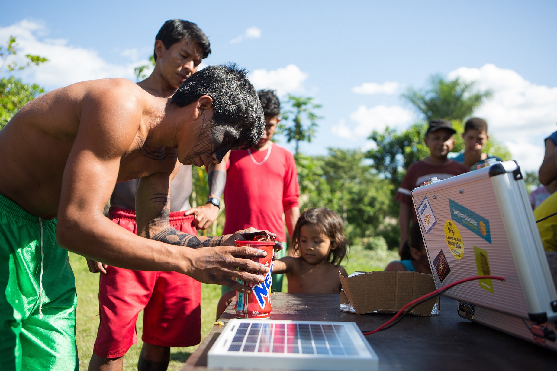 Na última semana, duas aldeias da Terra Indígena Saeré Muybu, no Pará, receberam a visita de ativistas do Greenpeace. Eles chegaram levando placas de energia solar, que passaram a iluminar os espaços comunitários e a escola. A comunicação entre as aldeias também será facilitada, porque a rádio comunitária não funcionará mais de forma intermitente.