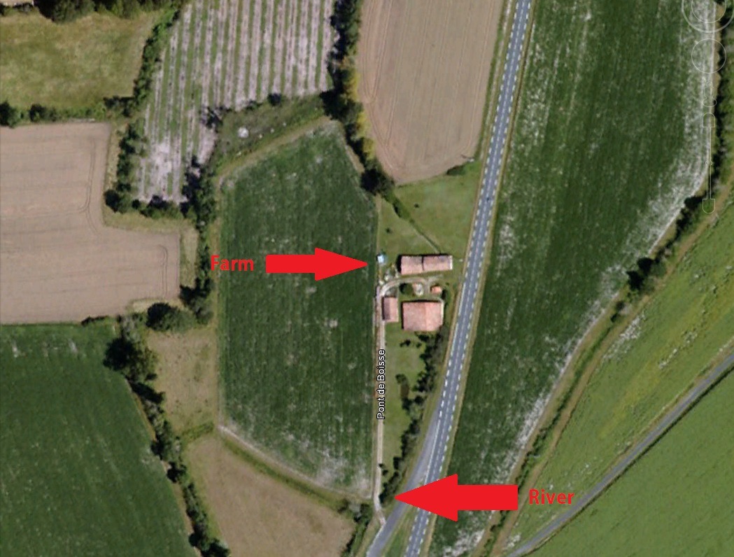 The plane ended up in this field. (Moulin Poisnaud)