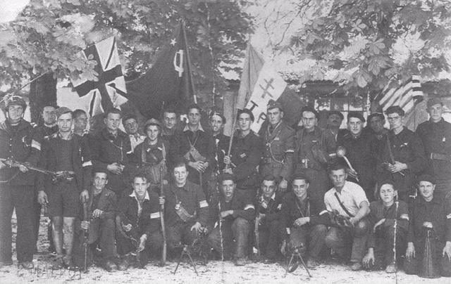 This is how it looks today (at right). The photo below with David and the group is taken at this very spot early August 1944.
