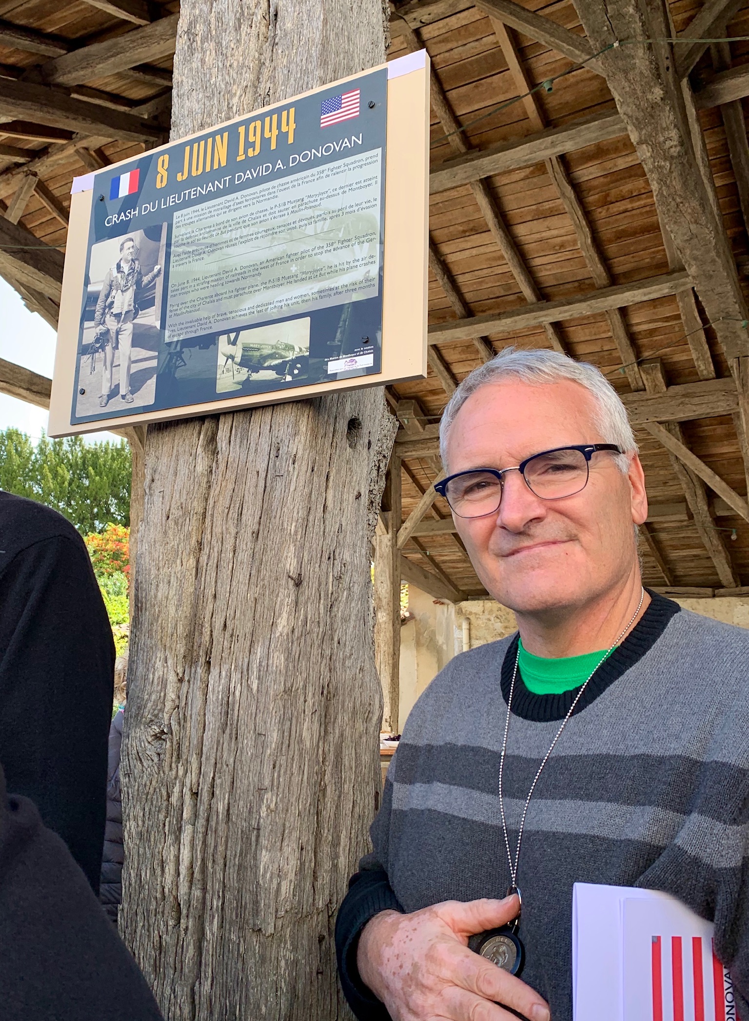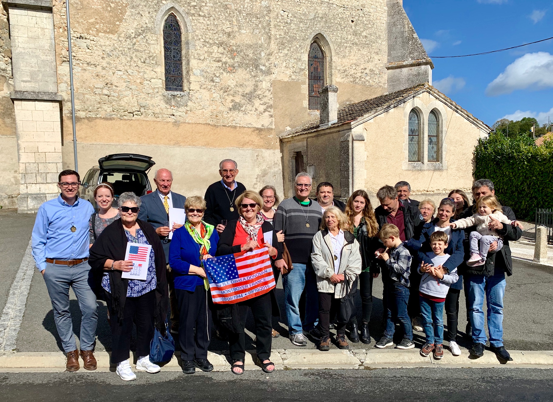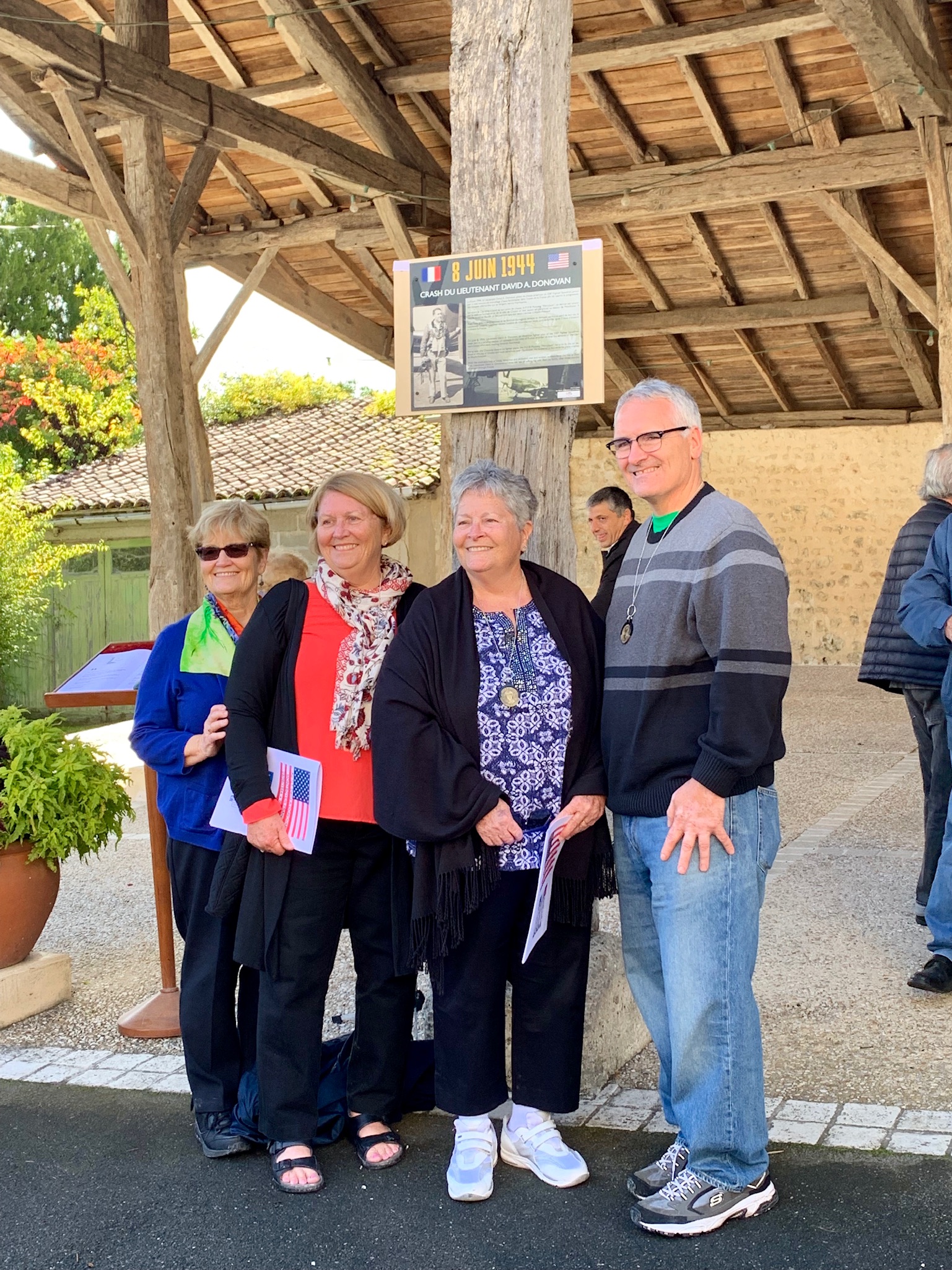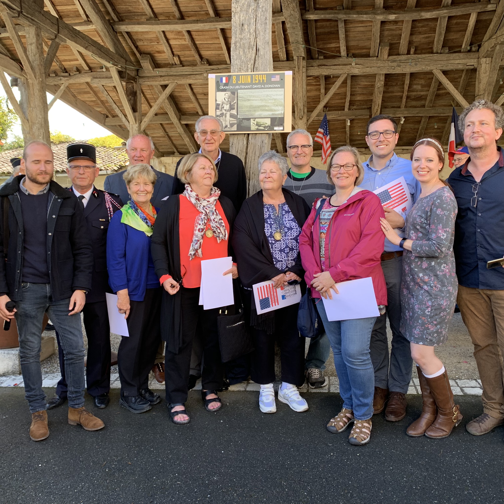We went to France to say thank you. Thank you to those that are still with us, and say thank you to the decedents of those who have passed. These are the very people that assisted this American pilot and kept him out of the hands of the enemy. We wanted to present them with a small gift, a Challenge coin depicting our father and commemorating the 75th anniversary of the event forever linking the Donovan family with our new French families. What we found was we were to ones being honored and thanked. The French people we met never forget the roll the Americans played in the liberation of their country. The communities of Chalais and Montboyer never forgot Lt. David Donovan who fought in his P-51 mustang doing his part to liberate them, but in turn, it was them who ended up liberating him.