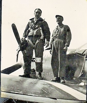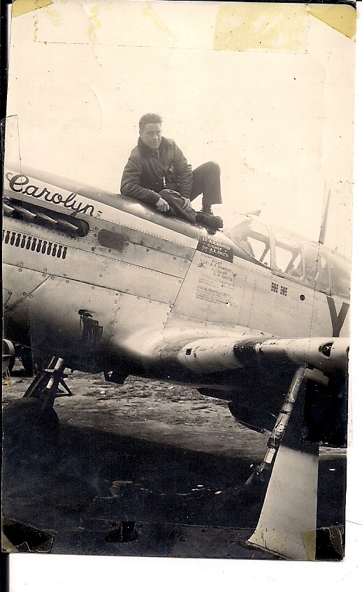 Lt. Peters had his first combat mission on D-Day June 6, 1944, and on June 8th he was on his third mission, and was flying Lt. Meteyer’s wing in yellow flight with Donovan and Coleman. After the mission, he wrote a letter home to his wife telling her about how close he came to getting shot down. “A 2-inch piece of armor glass is all that saved me for another day. We were in for a little strafing when it shattered in front of me. Someone knew how to use a gun, I guess. To say the least, I was a bit shaken. When I got back, I saw the whole plane did pretty well for all the holes in it. The poor guy behind me wasn’t so lucky.” The poor guy behind him was my father Lt. David Donovan.