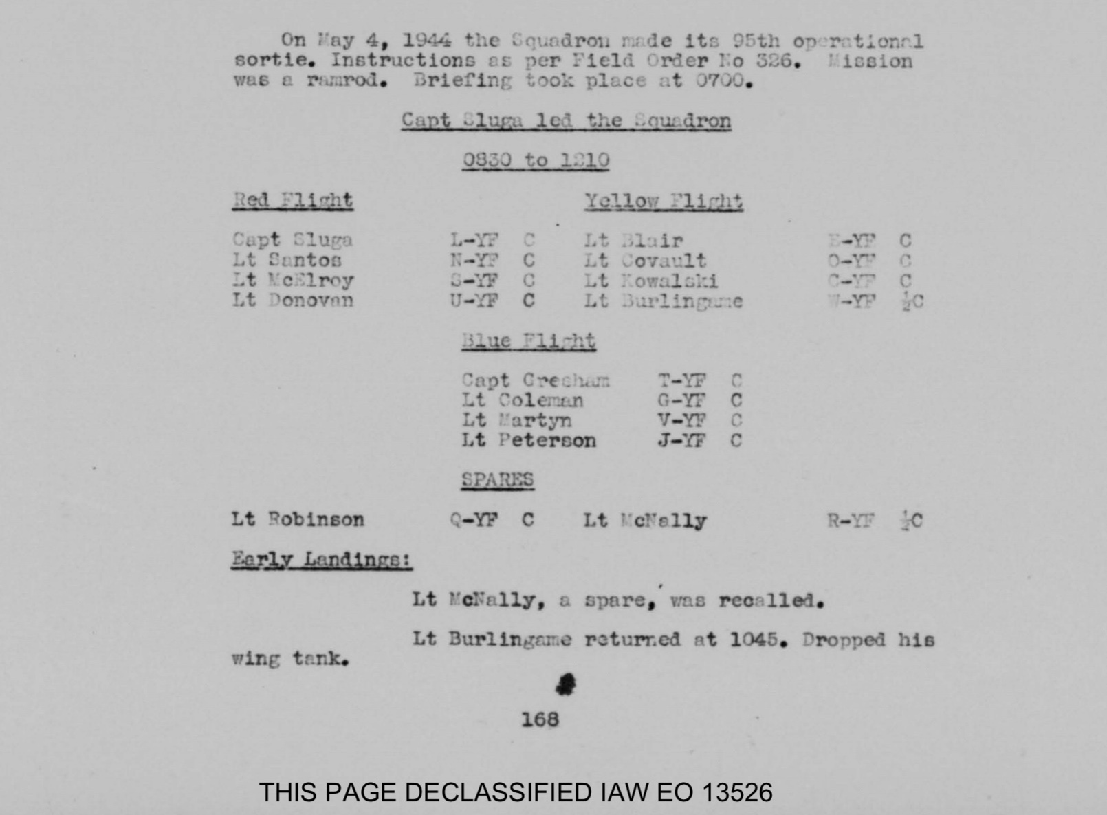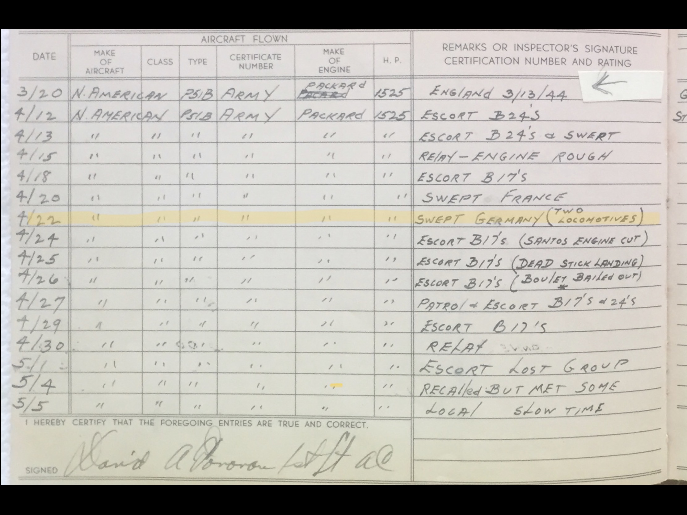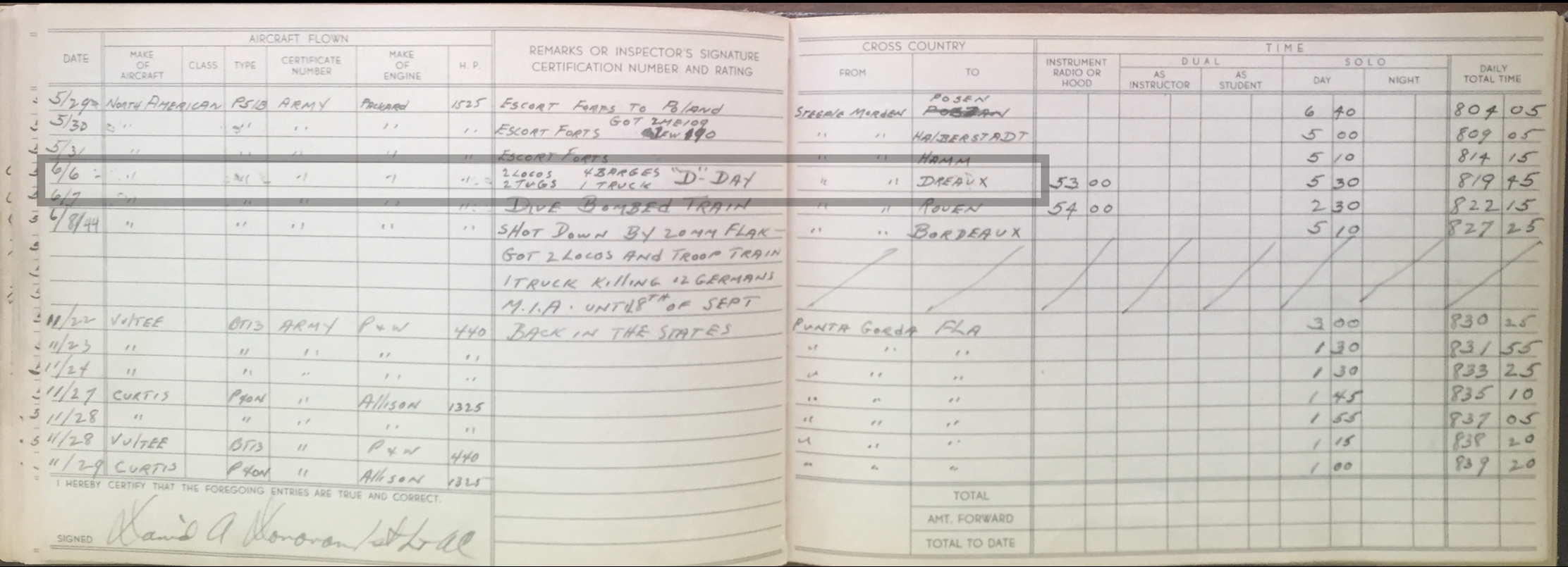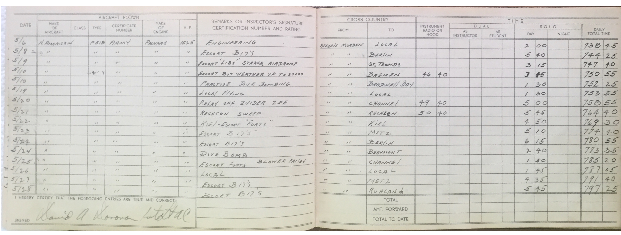 Lt. Donovan went out again on May 10, 1944. This mission was to Bradwell Bay, England for dive bombing practice.