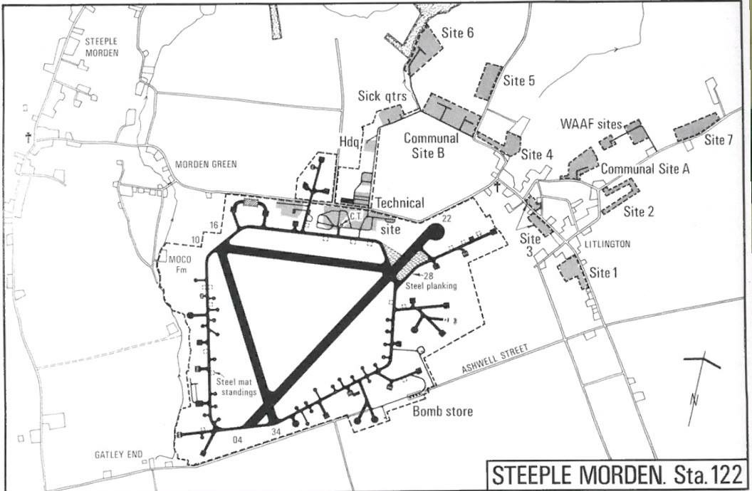 Steeple Morden was an alluring town with brick houses with thatched roofs. The village seemed to have been untouched by the war and unchanged for two hundred years. The locals would invite the American’s from the base into their homes for a meal and conversation. The children loved going to the base to talk to the airmen who were very nice to kids. The kids would lay down in the grass at the end of the runway and watch the planes take off and land only a hundred feet above them. (Translated from the book Tombé Du Ciel by Pierre-Baptiste Castandet)