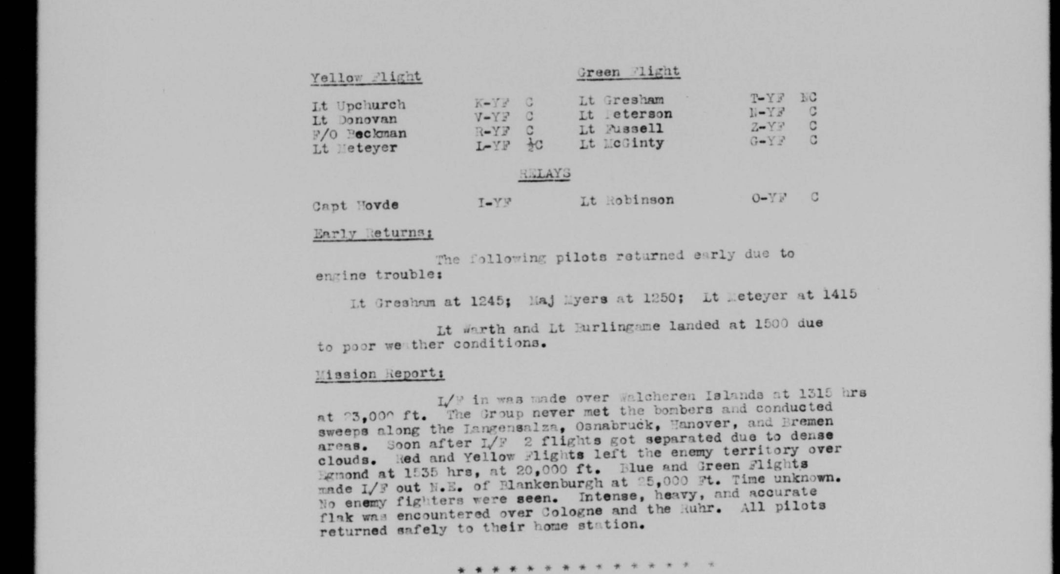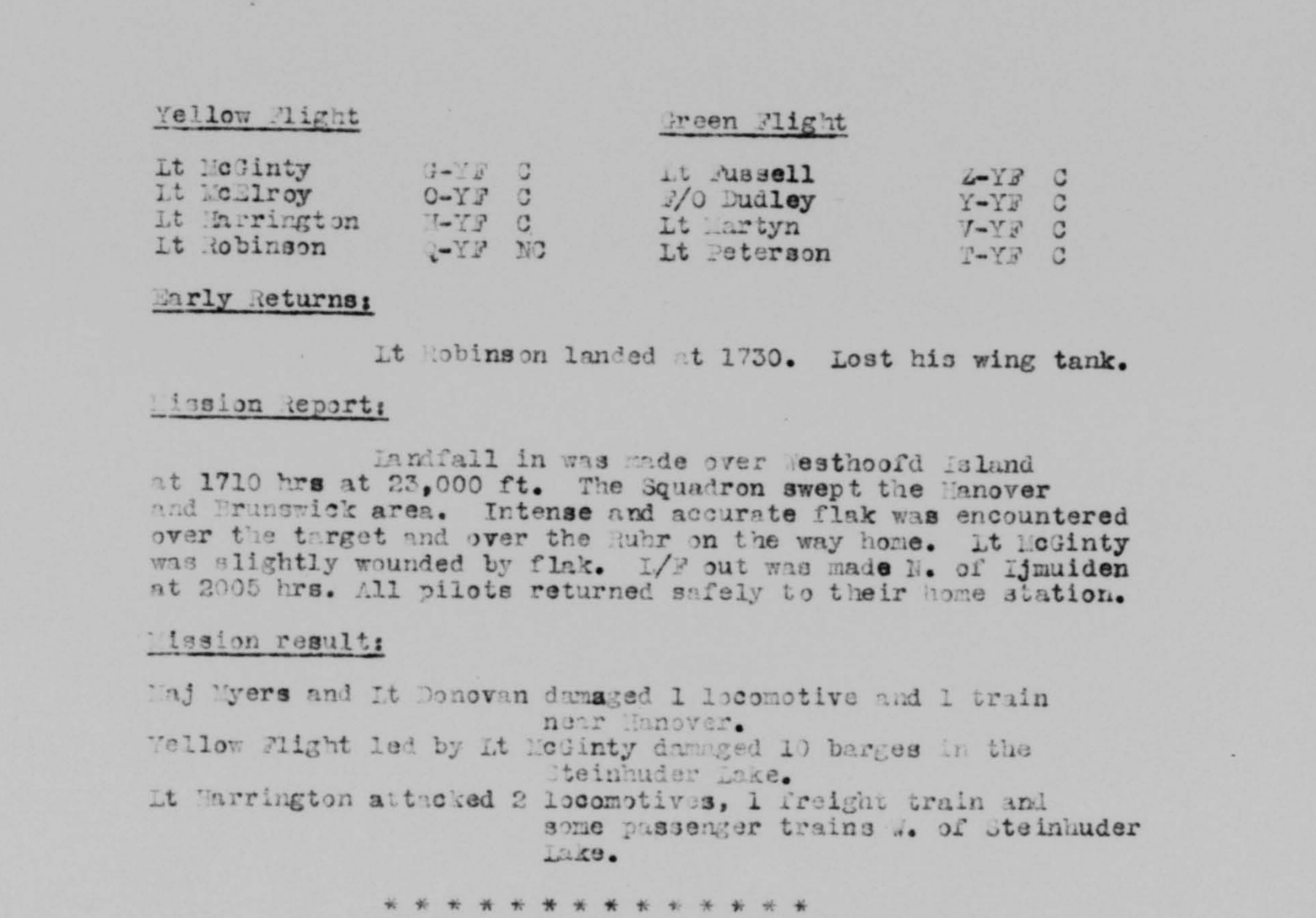 Mission 34: (this is the mission Donovan shoots down two enemy aircraft)