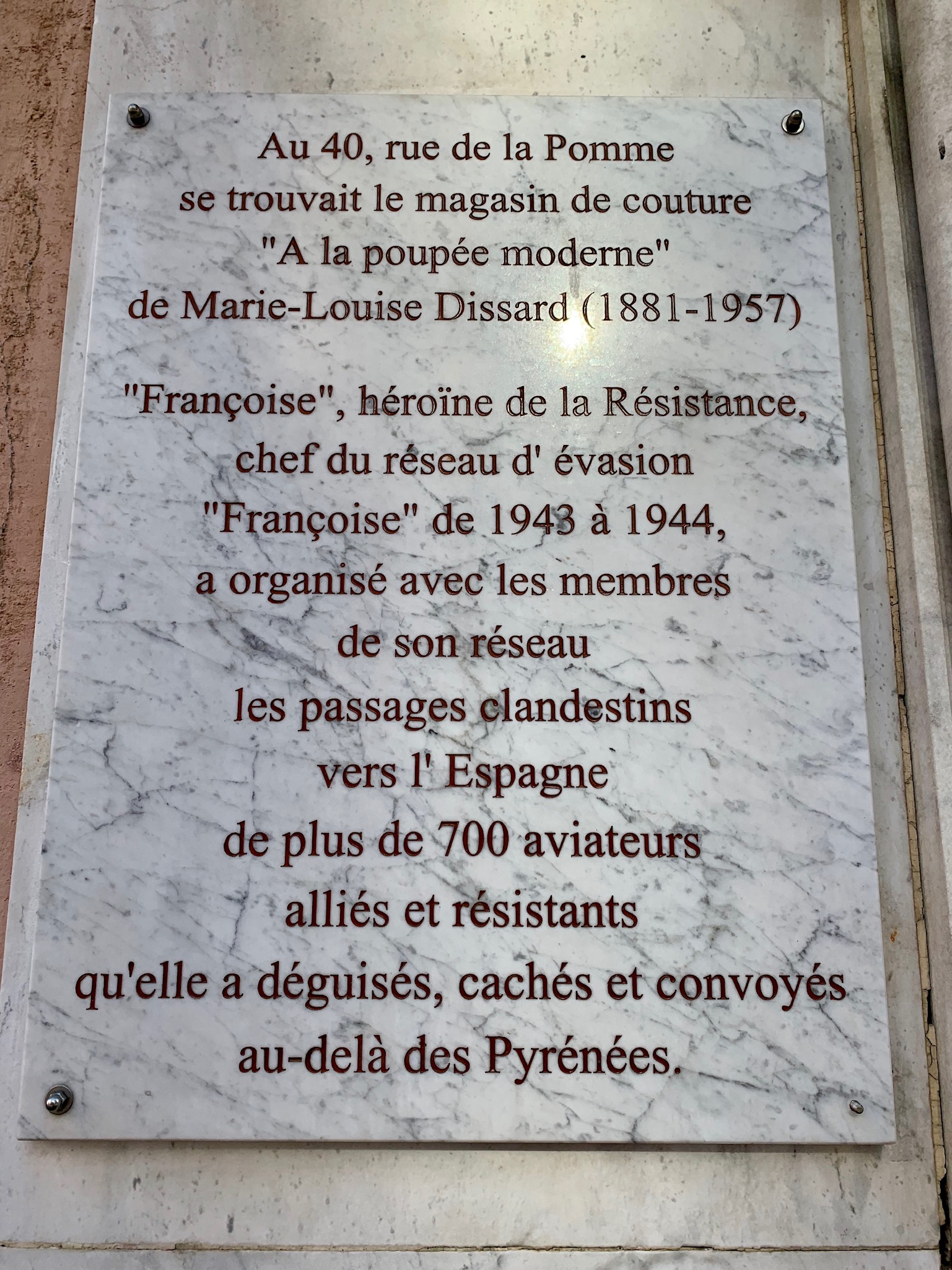 She was responsible for guiding 30 British and American airmen from the west regions to Toulouse starting in December of 1943 until her end of service August 8,1944. After D-Day of course her job became much more difficult and dangerous.