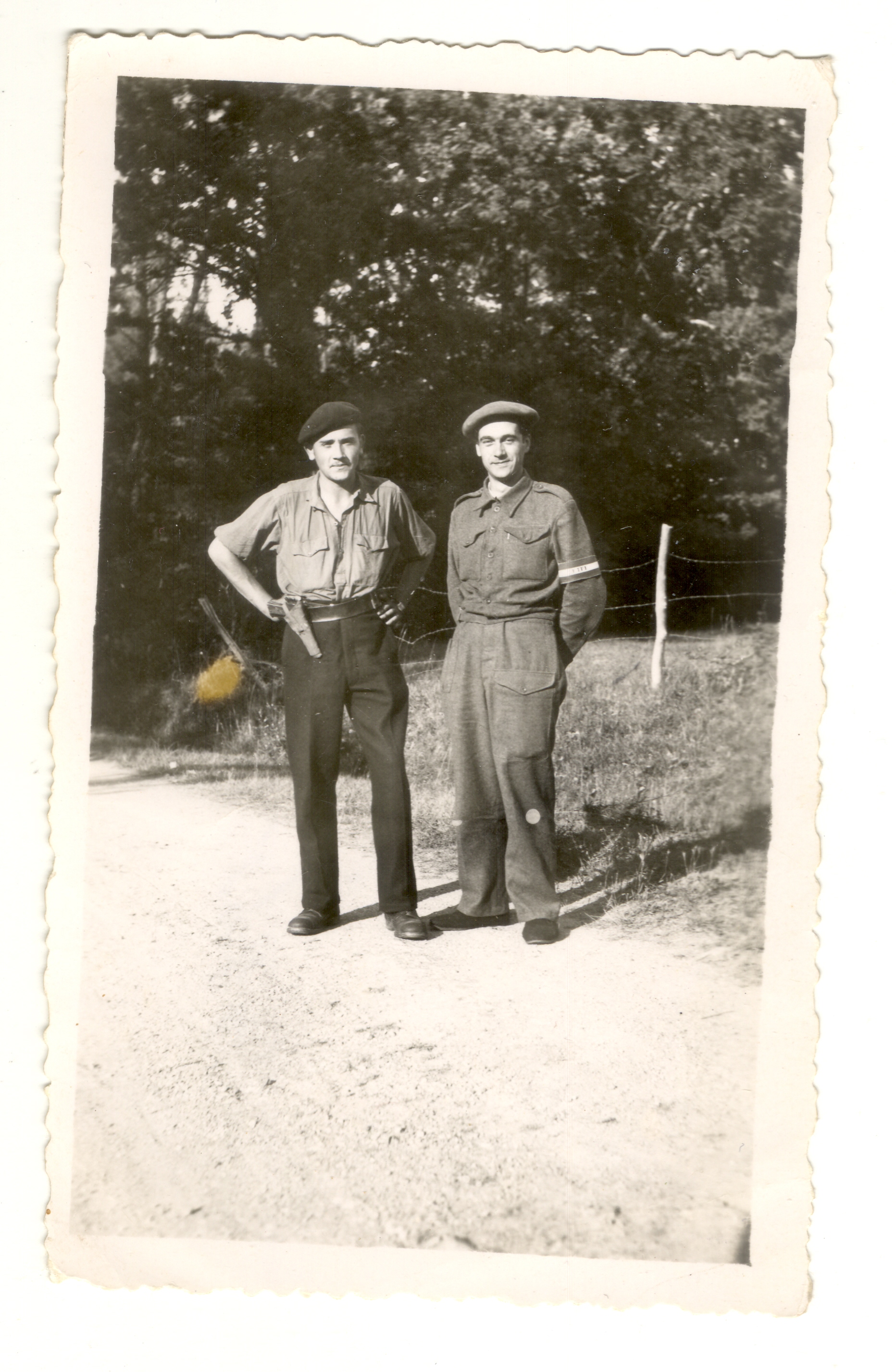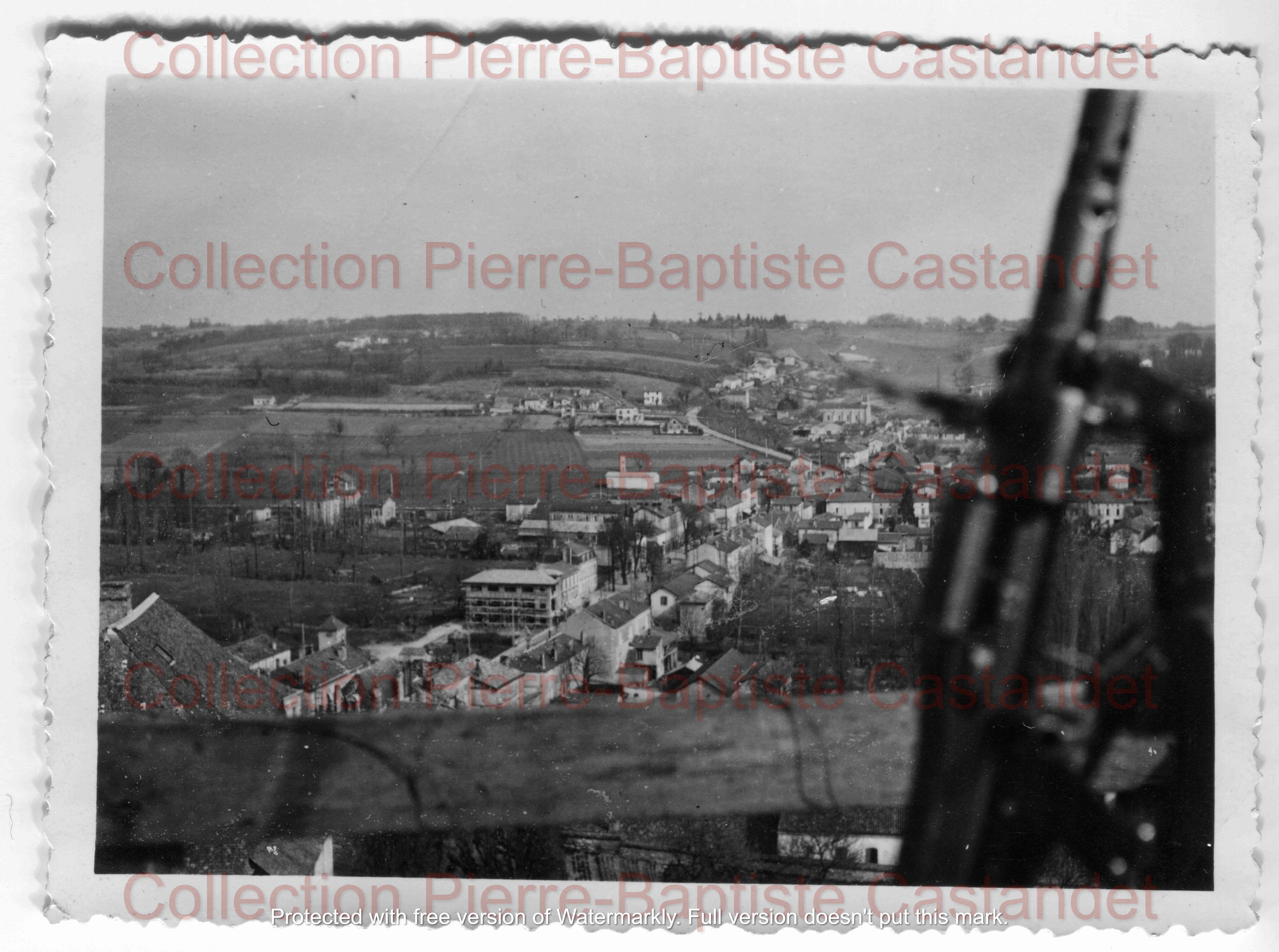 At Aubeterre, (Dordogne) there I ran into a boy. Spent the night in a garage in town. (He was a radio mécanique age 17, blond). He got 2 bicycles and the following morning went to Mussidan, (Dordogne). There I met Yves Roche at a café and he took me to a hotel were he worked Hotel Dupoy. Next day they brought the regional maquis chief called Bernard (tall, black curly hair 6/3 age 25). The next day I went to the maquis 3 miles outside of Mussidan (NW of it). Maquis chief called François. I stayed with them 2 weeks. They had gotten in touch with French Intelligence made me French papers with my photograph A girl came to get me and put me on a train at Beaupouyet (8kmWSW of Mussidan) where Yvette met me (short dress, black hair, had a net in her hair). On the train was Phillipe (tall, 6’, husky, fat aged 50). Went with them to Toulouse via Bordeaux. At Toulouse I arrived on the 26 of June was brought to 95 Chemin de Nicol, Toulouse. Phillipe brought me to the house. One of the women living there was called Garric had a daughter. 6 Americans had left from Toulouse that morning I was told at the house. I waited there in that house for 2 weeks. Then I was taken to another house which was Françoise house. She was not living in that house she was hiding out. In the house lived a widow called Mme Lamy whom Françoise was taking care of. I waited there for 5 days. They took me to Laguepie (Tarn et Garonne). They put me with a marquis. Phillipe brought me there.