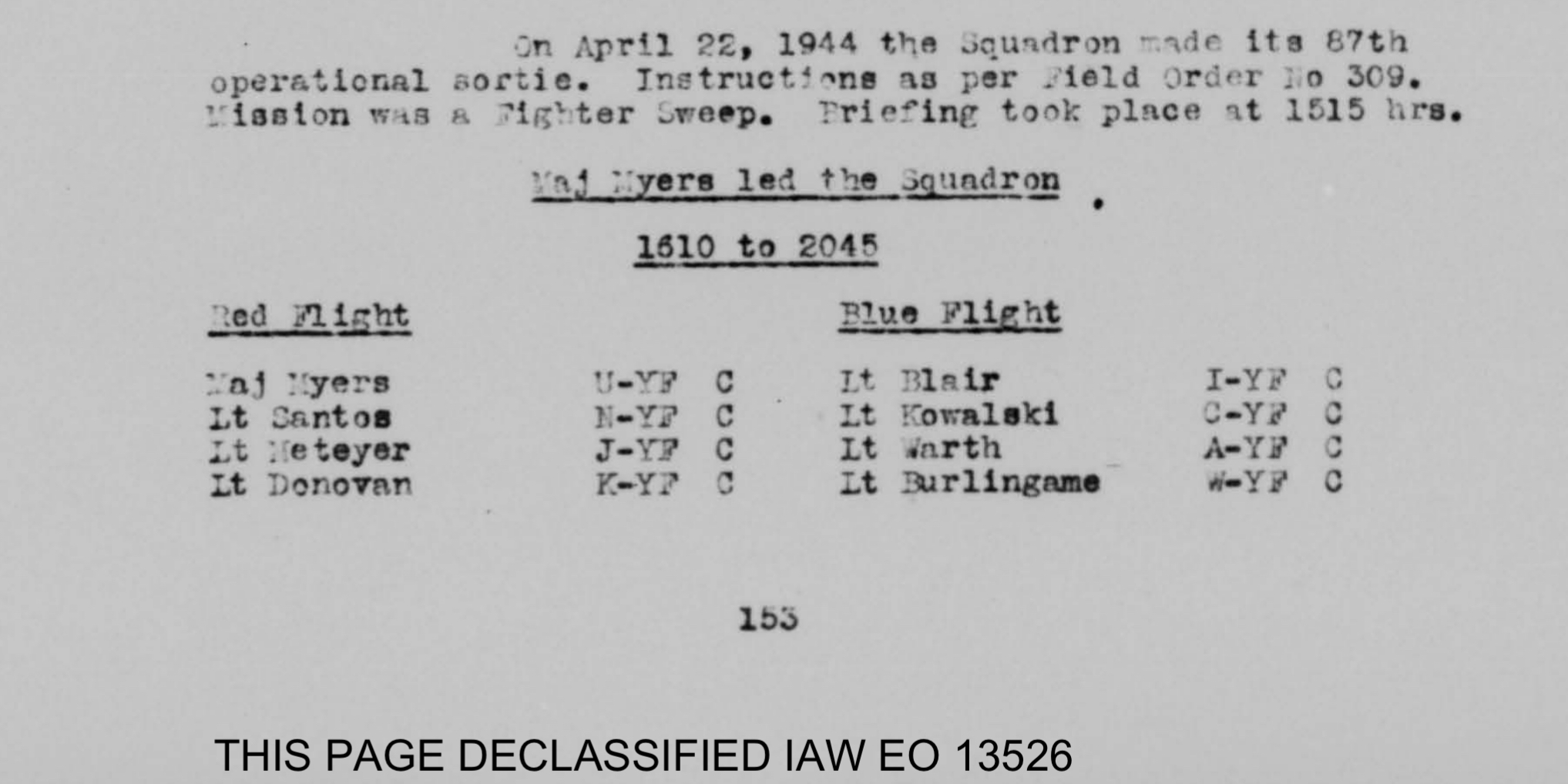 On May 26, 1944, Lieutenant David A. Donovan departed Steeple Morden Base for a reconnaissance or exercise mission around F-122 Air Force Base, England. Nothing in particular was reported during this flight.
