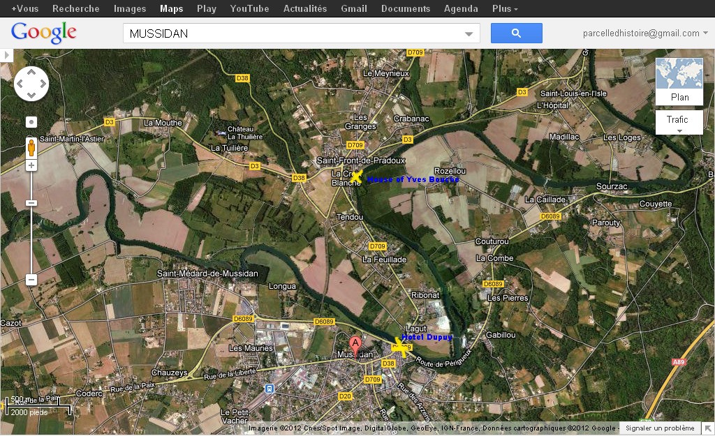 - On or before June 11, 1944, Dad was moved to this house just outside the city of Mussidan in the community of Saint-Front-de-Pradoux owned by Yves Bouche. This move perhaps saved dads life. In the morning of June 11, many men from the maquis took positions in and around the Mussidan train station waiting for the expected Nazi security train to roll in. When it did the ambush began, and at the end 18 German soldiers were killed. This security train was to protect this strategic main line railroad from saboteurs.