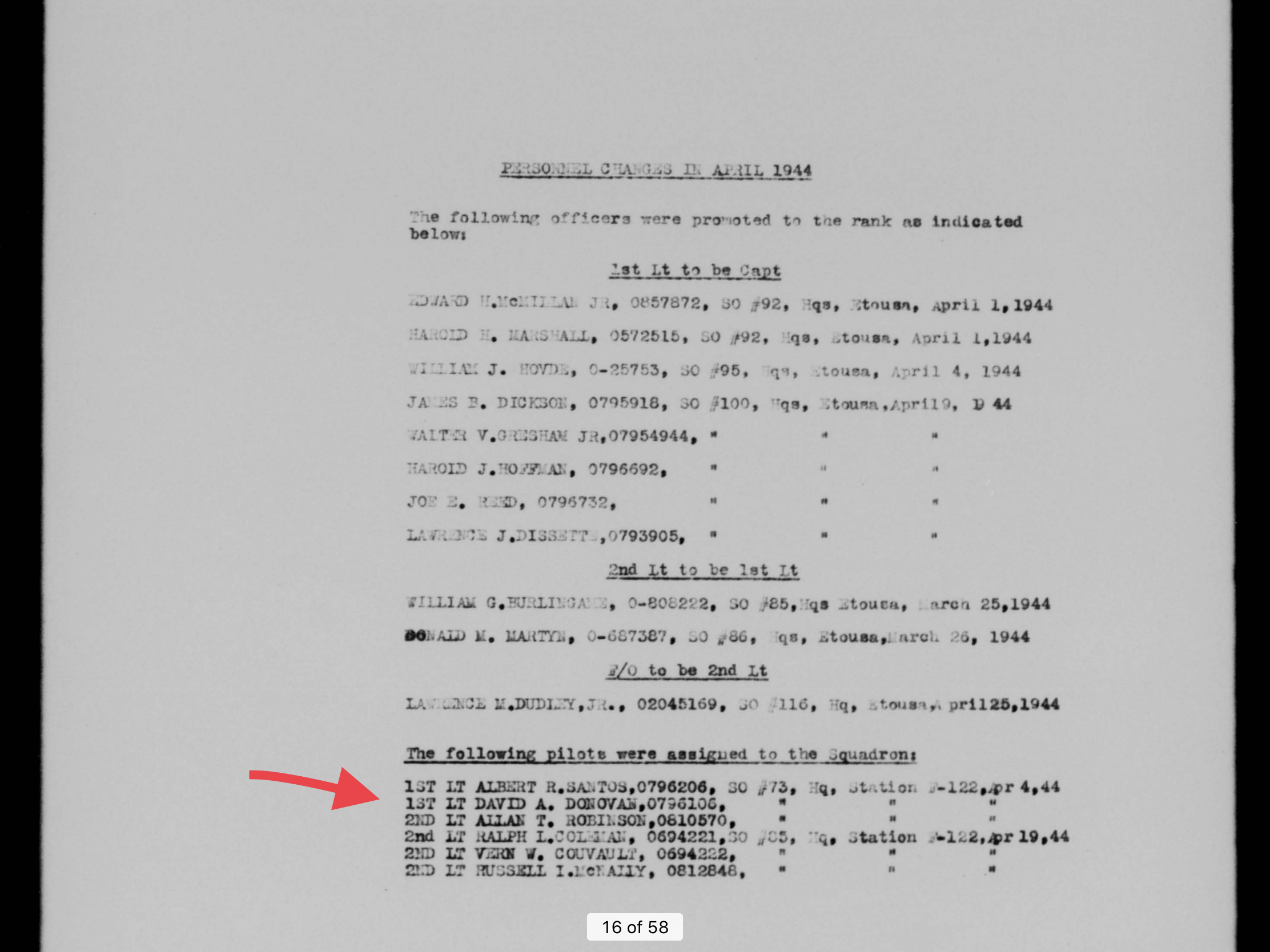 David got orders from the 12th Tactical AF which gave him orders to Naples, Italy and then to Caserta, Italy. There he was interviewed by MAAF intelligence and they arranged for him to fly to the U. K. by way of Gibralrar on September 6, 1944.