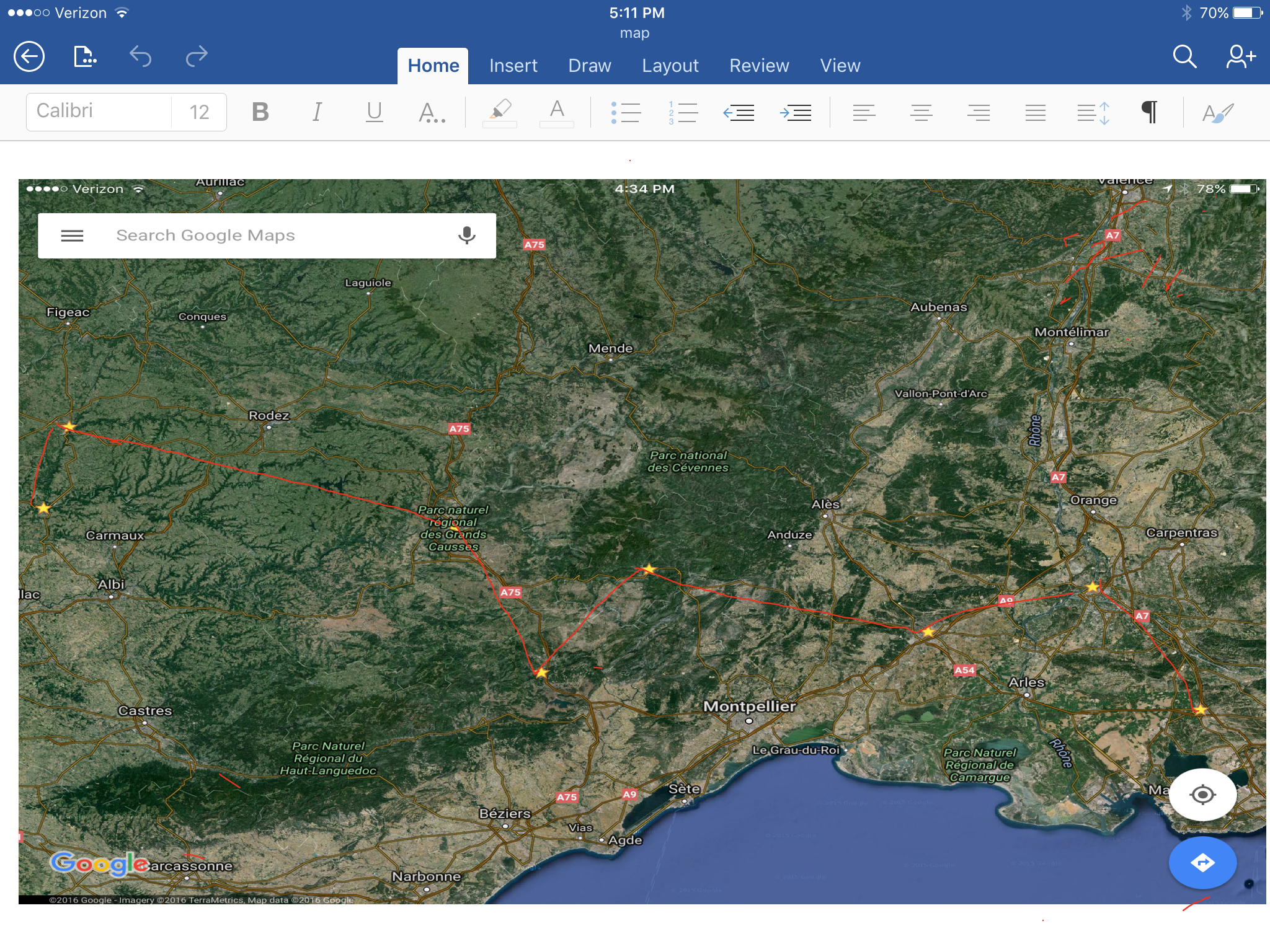 Above is showing the route Dad might have taken when he left the farmhouse on foot and traveled towards Périgueux as instructed by the farmer. He found a friend along the way. The only information we have from Aubeterre are from Dad's handwritten notes and his testimony. He told us that he stayed off the road and moved from farm field to farm field keeping out of site from the Germans.