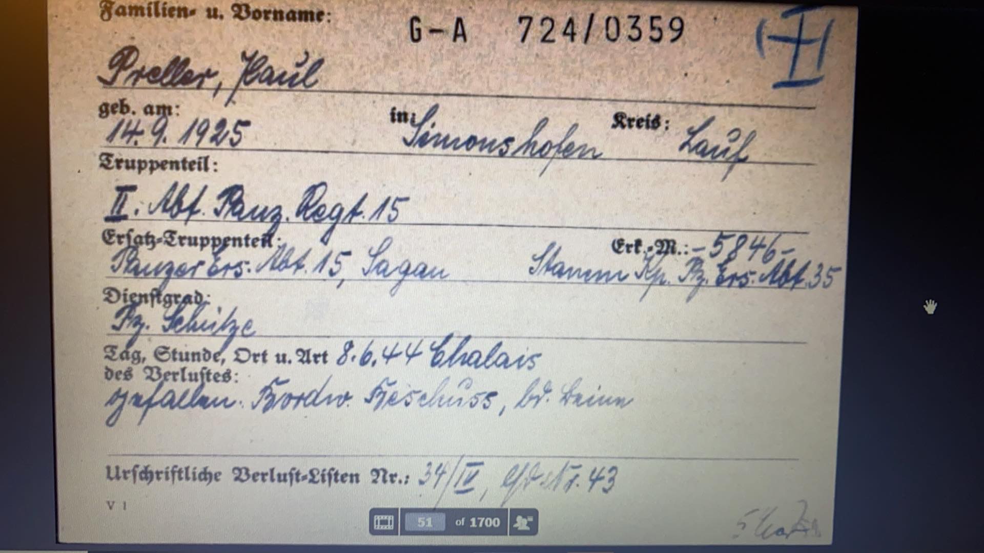 Rene Sallier was a young man working as a carpenter during that time when he heard the gunfire. He saw the plane with a trail of smoke falling from the sky. He hopped on his bike and rode to the scene. Rene had heard that the people in the area gave Dad a change of clothes. That would explain why Jacques said Dad had on a blue shirt when he met him.
