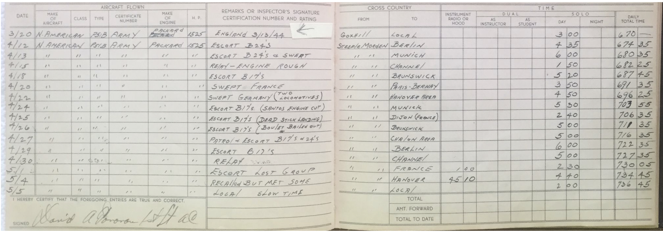 May 5th & 6th 1944 Lt. Donovan went up locally flying around England probably for a simple reconnaissance mission and to test technical equipment on his mustang.