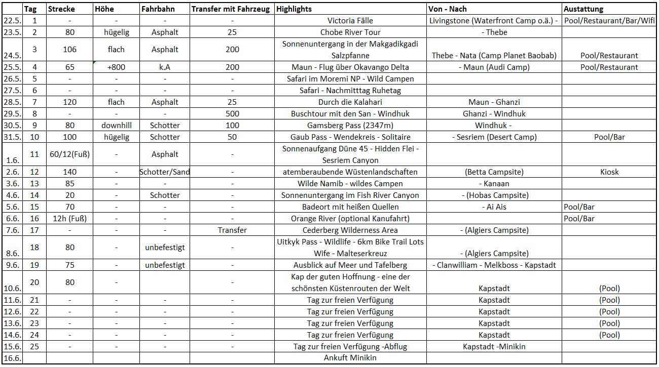 Es sind nur noch wenige Tage bis am 20. Mai Ross und Reiter in der fetten Wampe eines Alu-Vogels gen Süden abheben, um auf dem schwarzen Kontinent den vielleicht schönsten Urlaub ihres Lebens zu erstrampeln. Quasi die ideale Zeit um die Drahtesel einmal kurz vorzustellen und eine Prognose zur möglichen Platzierung des jeweiligen Gespannes am Berg abzugeben.