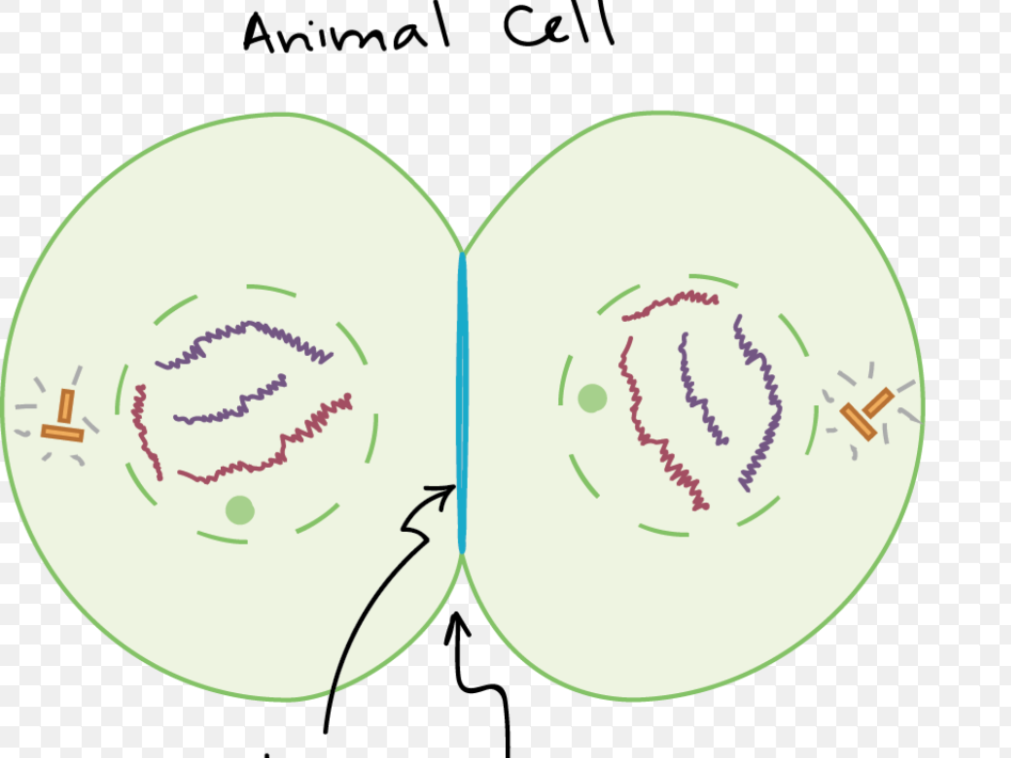 Cytokinesis is the point at which the cells have completely divided and formed new cell walls separate of each other. The point of contact pictured below is referred to as the cell plate. At this point the cell has everything it needs to function independently from the other cell.