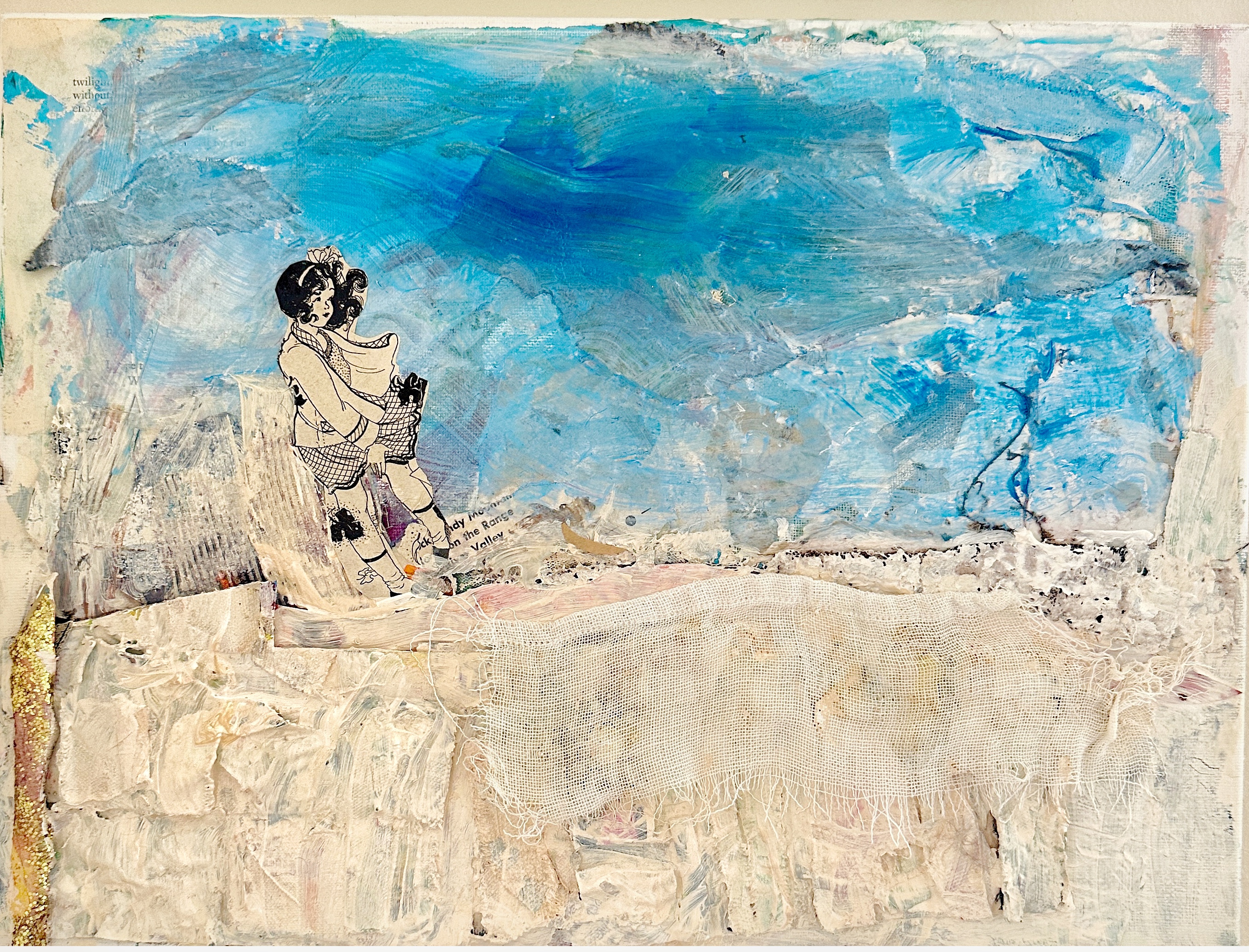 Working intuitively with hand-dyed papers, fabrics I’ve collected over the years, and acrylic paint, I construct collages that are as much about the process as they are about the final image. The layers of texture and color speak to the complexities of memory and identity, capturing moments of vulnerability and freedom.