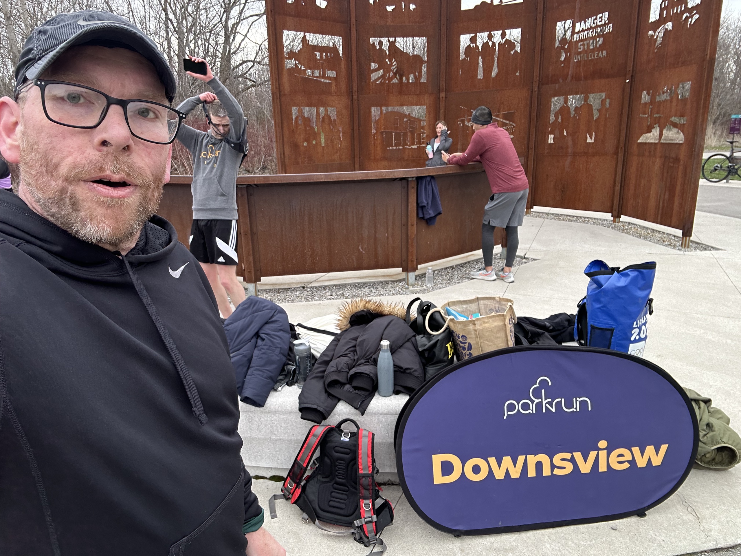Descended the stairs into King subway station. Not many people around on the platform, but there were two folk in running kit. “Are you guys doing Parkrun?” I asked and, yep, they were. Two English folk who’d been in the city for most of the week, for work, and were heading home that night. The bloke has done tons of them before, the lass had only done like 5 or so. Turns out they were even staying in the same hotel as me.