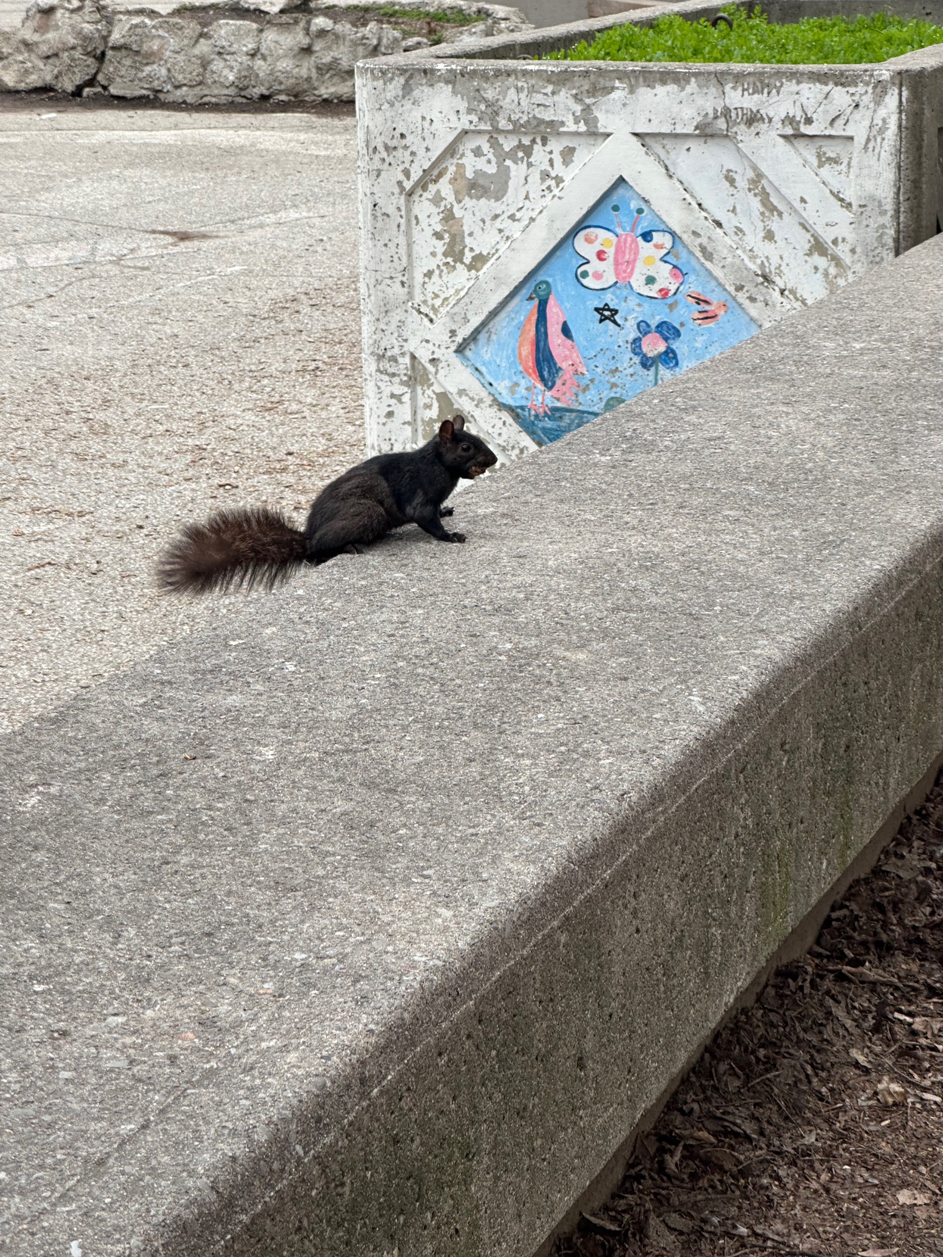 I guess you could call it invigorating, but mostly it was just really horribly unpleasant. I was walking west, towards the distillery district. A black squirrel did pop its head up. I like these black squirrels.