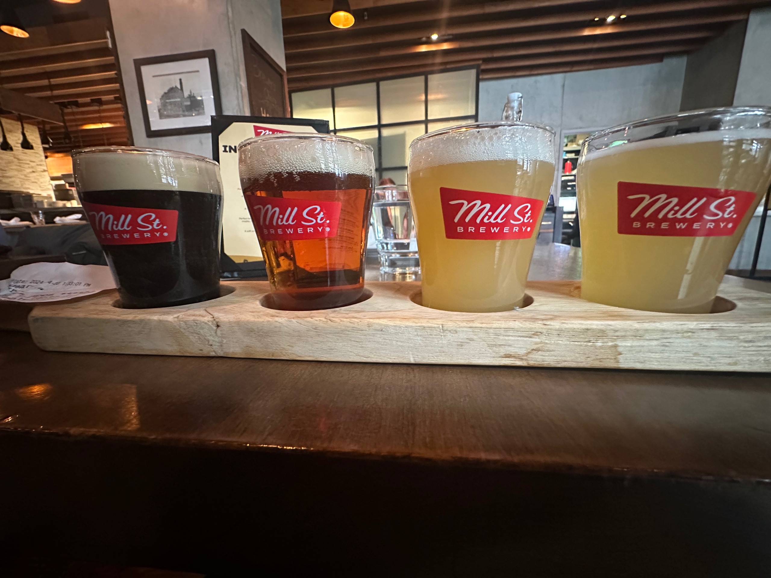 What it’s got now is a load of shops and bars and restaurants. I mean you know the sort of place, they exist all over these days - a neglected industrial bit of town gets some polish and gentrification and becomes a place to visit. I sound cynical but I’m not, I really enjoyed it. But I did not enjoy the second hailstorm. I hadn’t intended to go in any of the watering holes here, but I really wanted to escape the weather plus I was a little hungry - so, Mill Street brewery, hello. I’ll have brunch and a tasting flight please. Why does your fry-up have melon in it?
