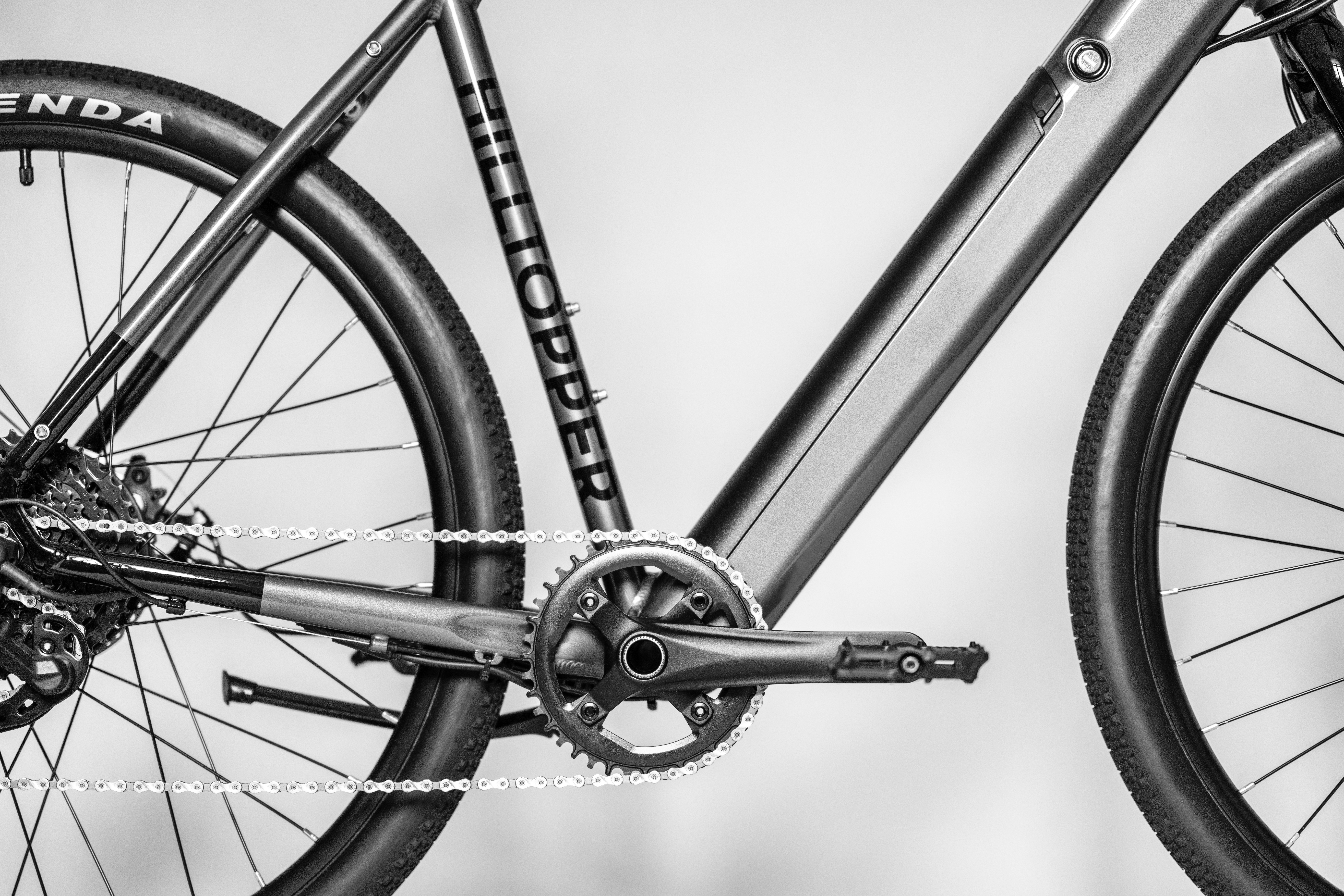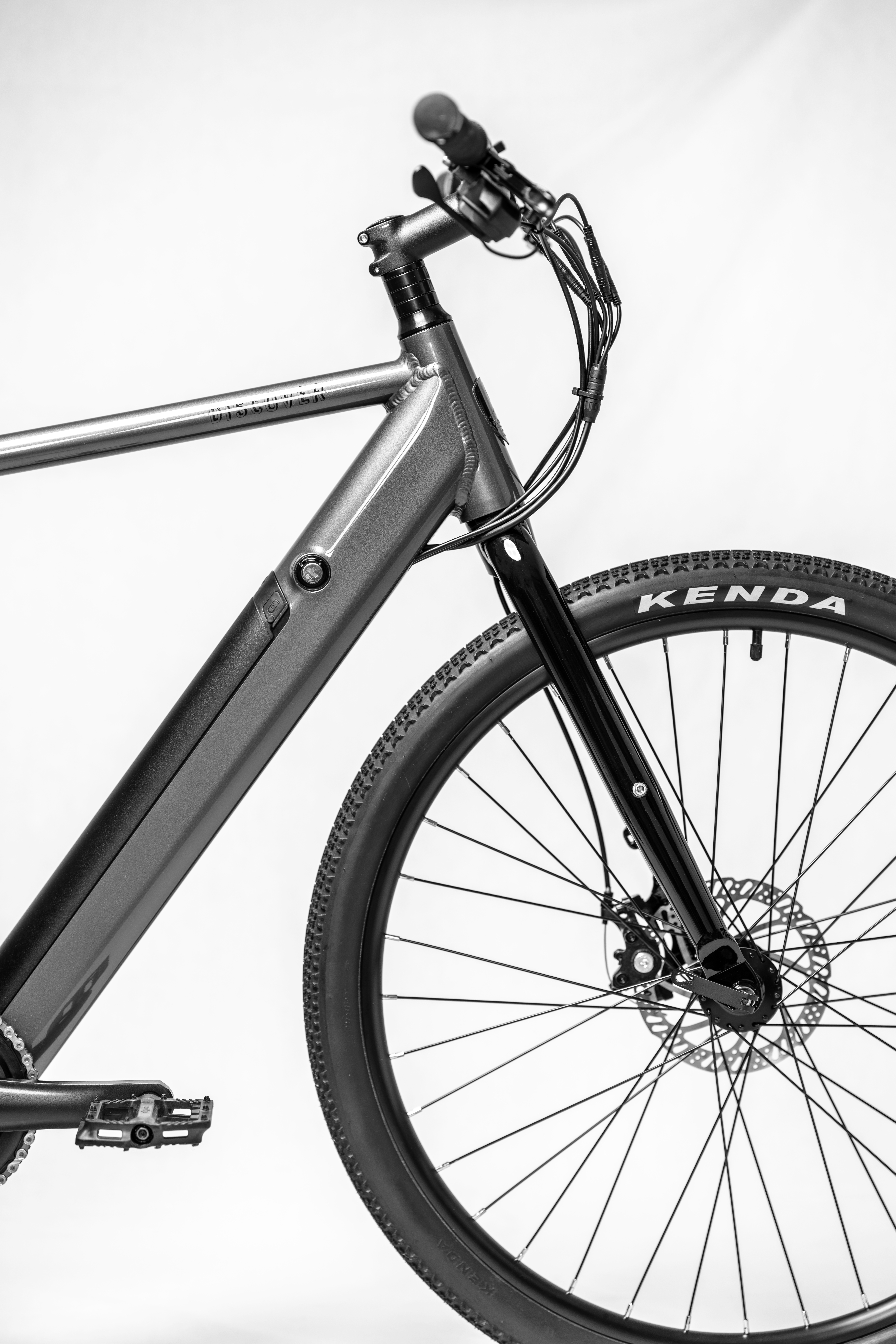 Whatever riding you like to do, be it city streets, or gravel farm roads, the Discover will get you there and back in comfort and style. We designed the Discover to be lightweight and maintenance friendly. The drivetrain is a 1 x 9 system that eliminates the front derailleur while giving you a wide range of gears in back for tackling the hills. And our 36V 350W rear hub motor will give you all the assist you need. We also made sure the Discover has all the attachment points you need to outfit your bike with fenders, lights, racks, bags, and water bottles of your choosing. We are even providing a front rack to get you started.