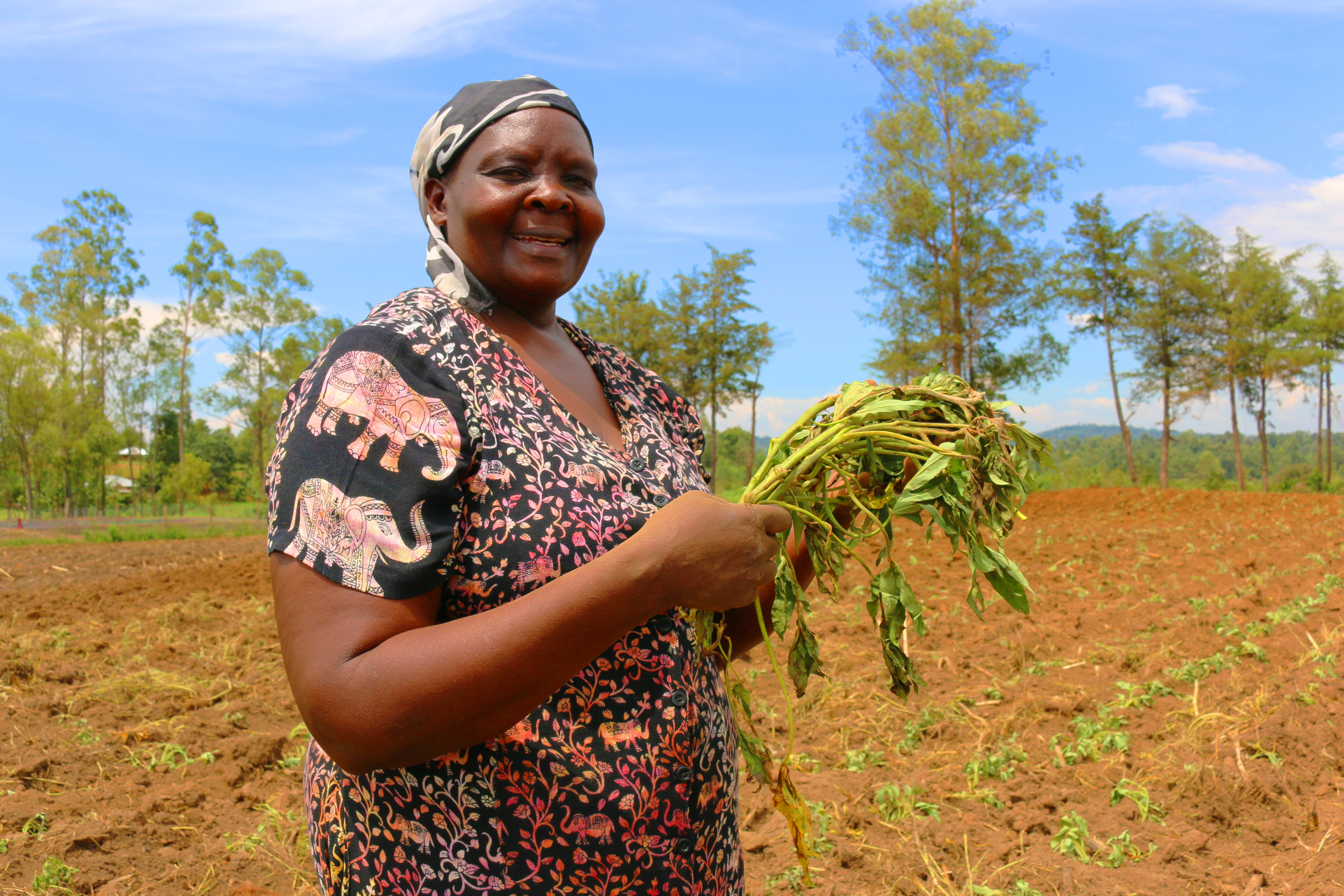 Emily was initially given planting material from the Kenya Agricultural & Livestock Organization and as Gabriel says the rest is history: "the yield was good and so she decided to continue growing OFSP. We have now purchased roots from her at least 4-5 times and will continue to do so."