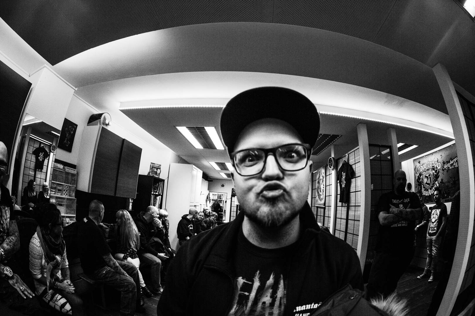 Tag 7 begann mit zermürbten Gesichtern. Frühappell wie bei der Bundeswehr um pünktlich beim Meet & Greet im Bulldog Tattoo in Hamburg zu sein. Da ist man als Tour Manager gleich ganz oben auf der Tages Hass Liste.