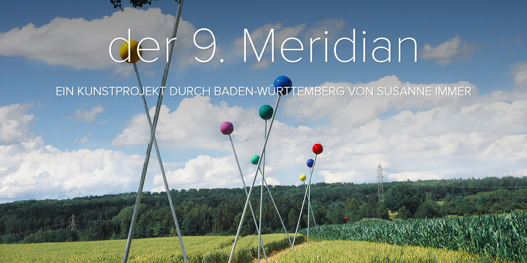 Die Meridiane, Längengrade, verbinden als gedachte Linie, als mathematisch konstruierte Linie, zur Vermessung und Bestimmung einzelner Orte auf unserer Weltkugel, die geographischen Pole miteinander. Eine Methode zur Positionsbestimmung, das alle Staaten der Erde akzeptieren und anwenden. Ein Zustimmungsgrad, den kein weiteren System sonst erreicht. Die weltweite Akzeptanz scheint mir, aus der Gerechtigkeit, Neutralität und Transparenz dieses Systems zu resultieren. So wird das Koordinatensystem zur Metapher oder zum Hoffnungssystem, unsere Welt als EINE Einheit zu verstehen. Das eben skizzierte sichtbar und erfahrbar zu machen, ist das Anliegen meiner Installation der 9. Meridian. Als bekanntes und damit leicht zu entschlüsselnde Symbol für Ortsmarkierungen wähle ich die Stecknadel. 2017 hatte ich die Möglichkeit bei Altdorf / Böblingen, meine Installation zu beginnen. Elf 5 m hohe „Stecknadeln“ mit unterschiedlich farbigen Köpfen zeichnen den Wegverlauf des 9. Meridian dort exakt nach, so dass der Betrachter die Meridianlinie als solche wahrnimmt und sie gedanklich einmal um die Welt kreisen lassen kann. Somit setzt die Installation der 9. Meridian ein Zeichen für das notwendige Miteinander - grenzüberschreitend, weder an politischen noch gesellschaftlichen oder kulturellen Grenzen gebunden.