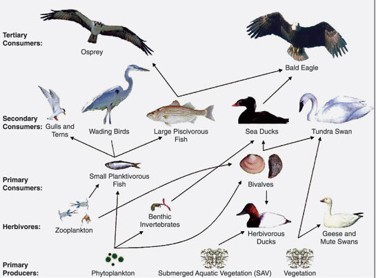 Producers-Phytoplankton, Submerged Aquatic Vegetation (SAV), Pondweed, Waterweed, Naiads, Widgeon grass.