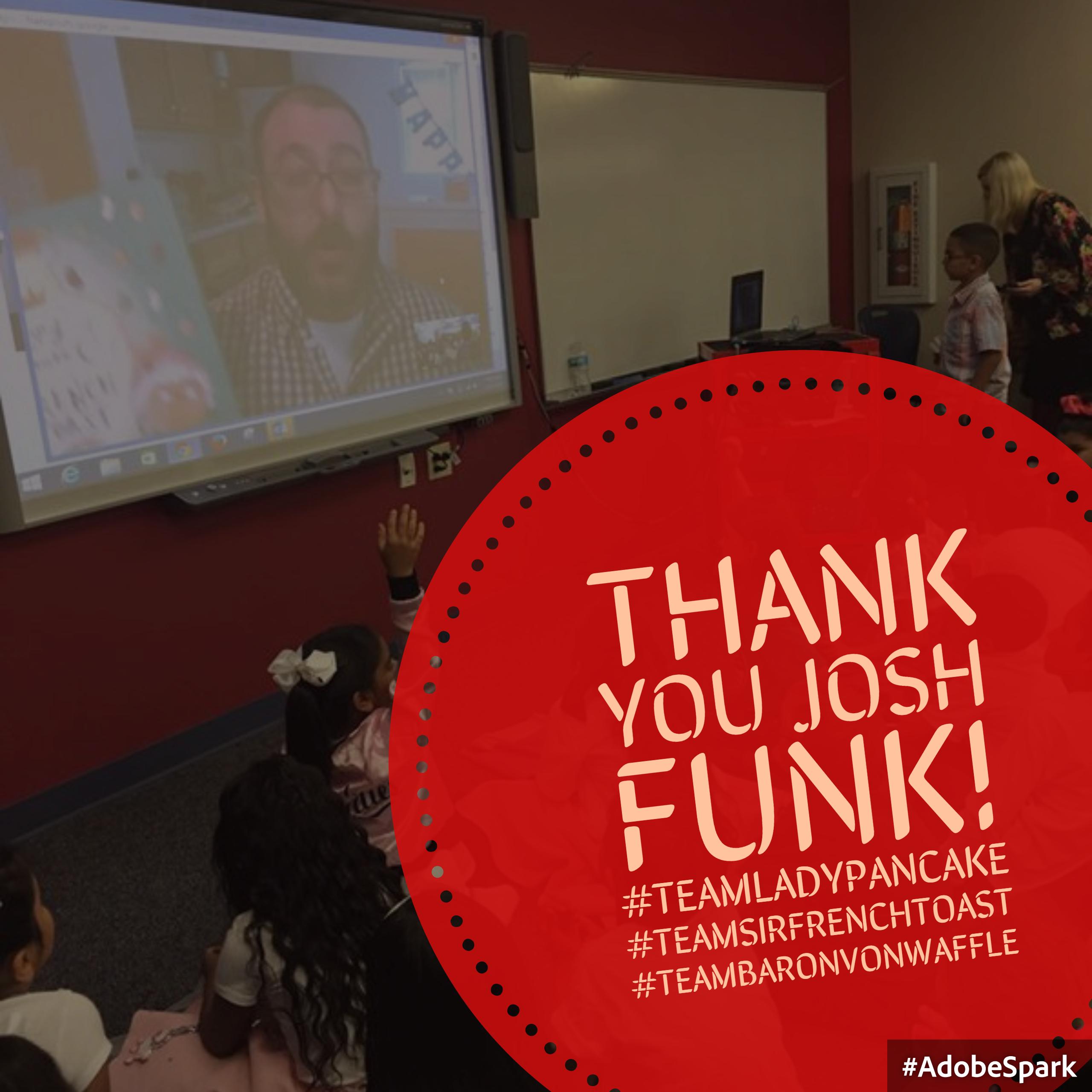 The author of the AMAZING Book Lady Pancake & Sir French Toast, Josh Funk, took time during his lunch break to speak to the Castleberry Elementary 2nd Graders!