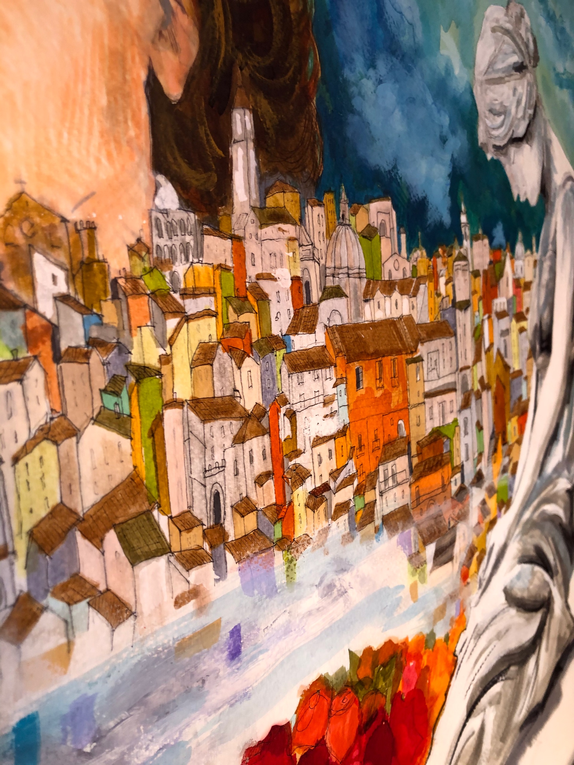 Dal rispetto per la sofferenza di un’eternità che ha portato via con se’ anime, mentre altre anime restano in città grigie dove si respira dolore ai sogni di una città che si carica di colore con toni caldi e vivaci!
