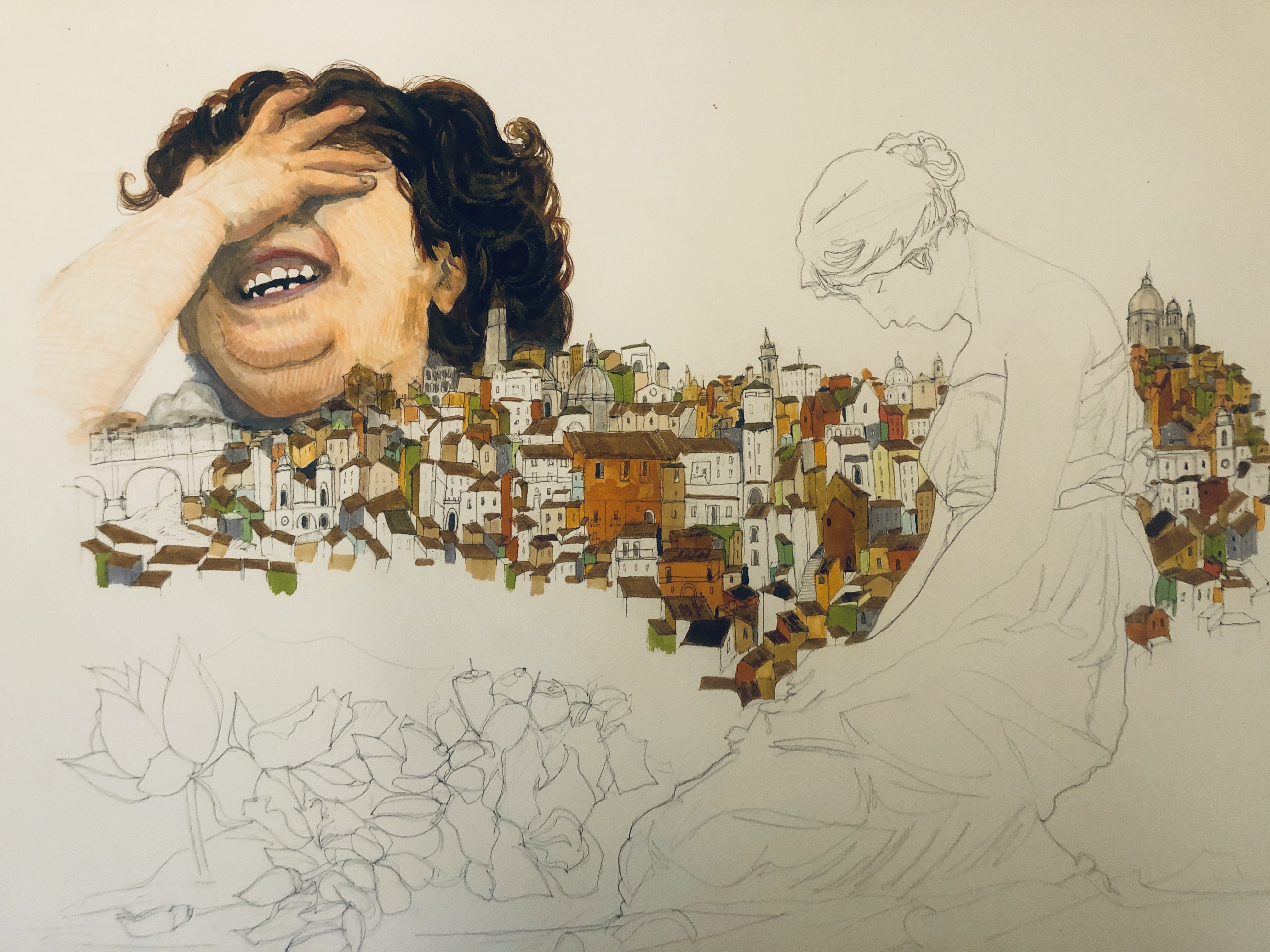 Ognuno di noi ha la sua parte in questo triste scenario dove ci ritroviamo cercando di non perderci, in una paura che fa tremare. In questo isolamento, forzato in casa , mentre la vita rimane sospesa in una corsa al tempo che sembra essere sempre meno, trovo l’ispirazione. Questo lavoro vuole essere una testimonianza di una Italia descritta e disegnata, di una realtà che ha genuflesso l’universo e dello stato d’animo tra paura e fiducia che vive in noi mentre la vita continua a scorrere!