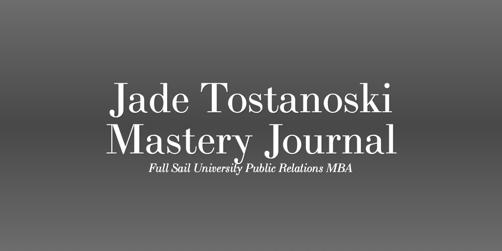 Jade Tostanoski Mastery Journal Full Sail University Public Relations MBA