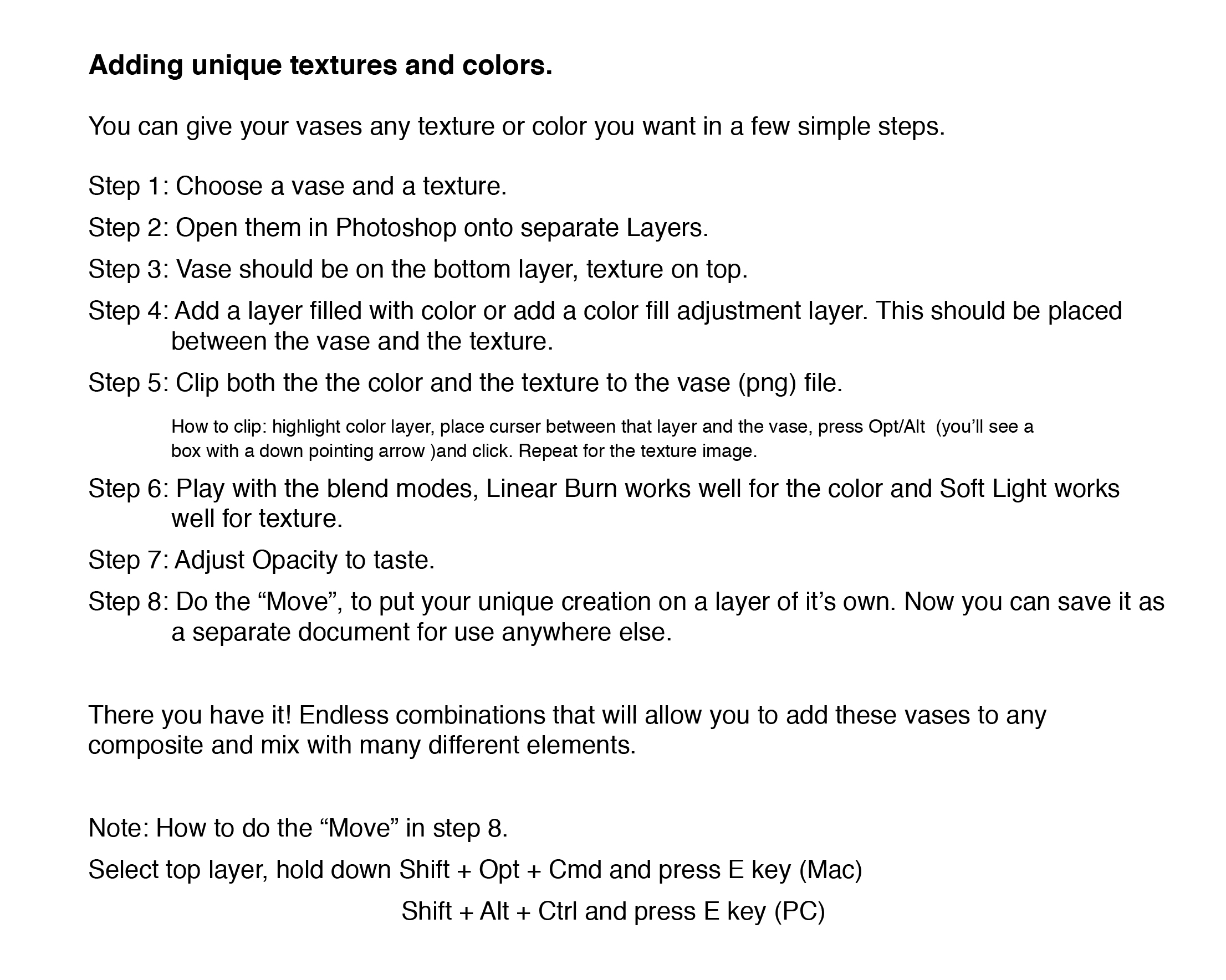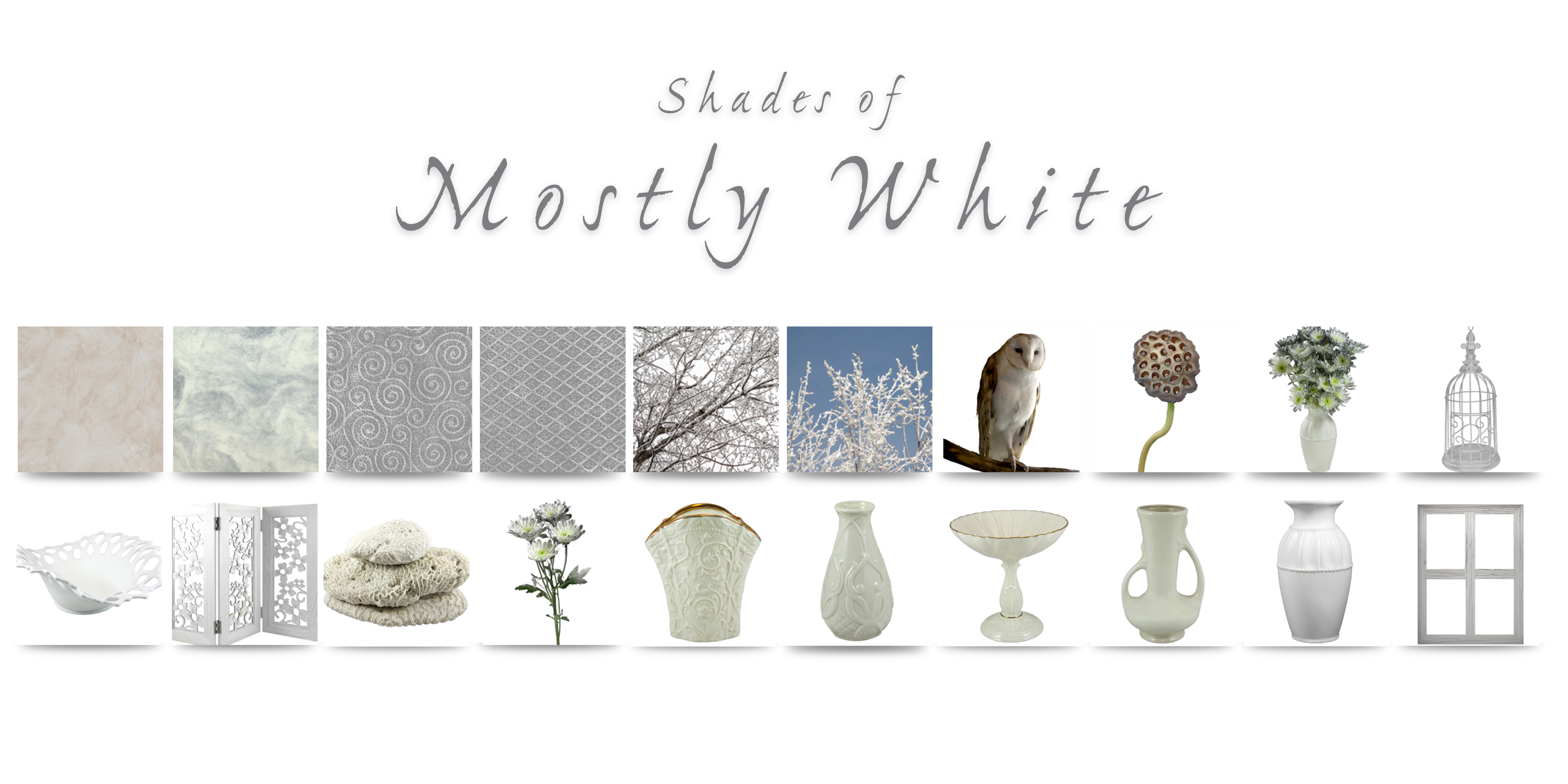 This is a collection of white and light colored objects, papers, and textures. They can be used to create still life composites on their own or the individual items can be added to a variety of compositions. The lighter colors give you versatility in altering the colors to blend in with any color scheme.