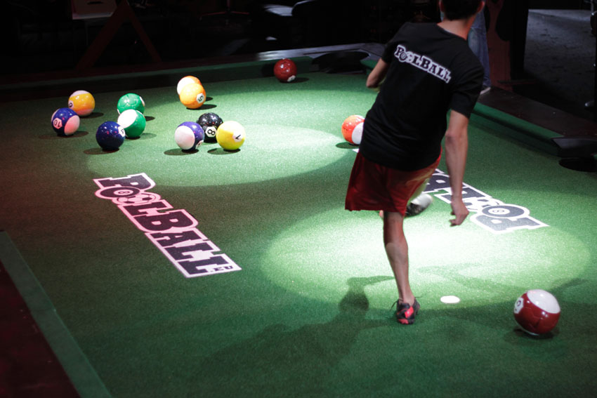 Bei Pool Ball kommt jeder auf seine Kosten! Aufgabe ist es, auf einem etwa viereinhalb auf acht Meter großem Billardtisch, auf dem man sich, dank TÜV-zertifizierter Bauweise, bewegen kann, modifizierte Fußbälle nach angepassten Billardregeln, mit der Hilfe von Kopf und Fuß, einzulochen.