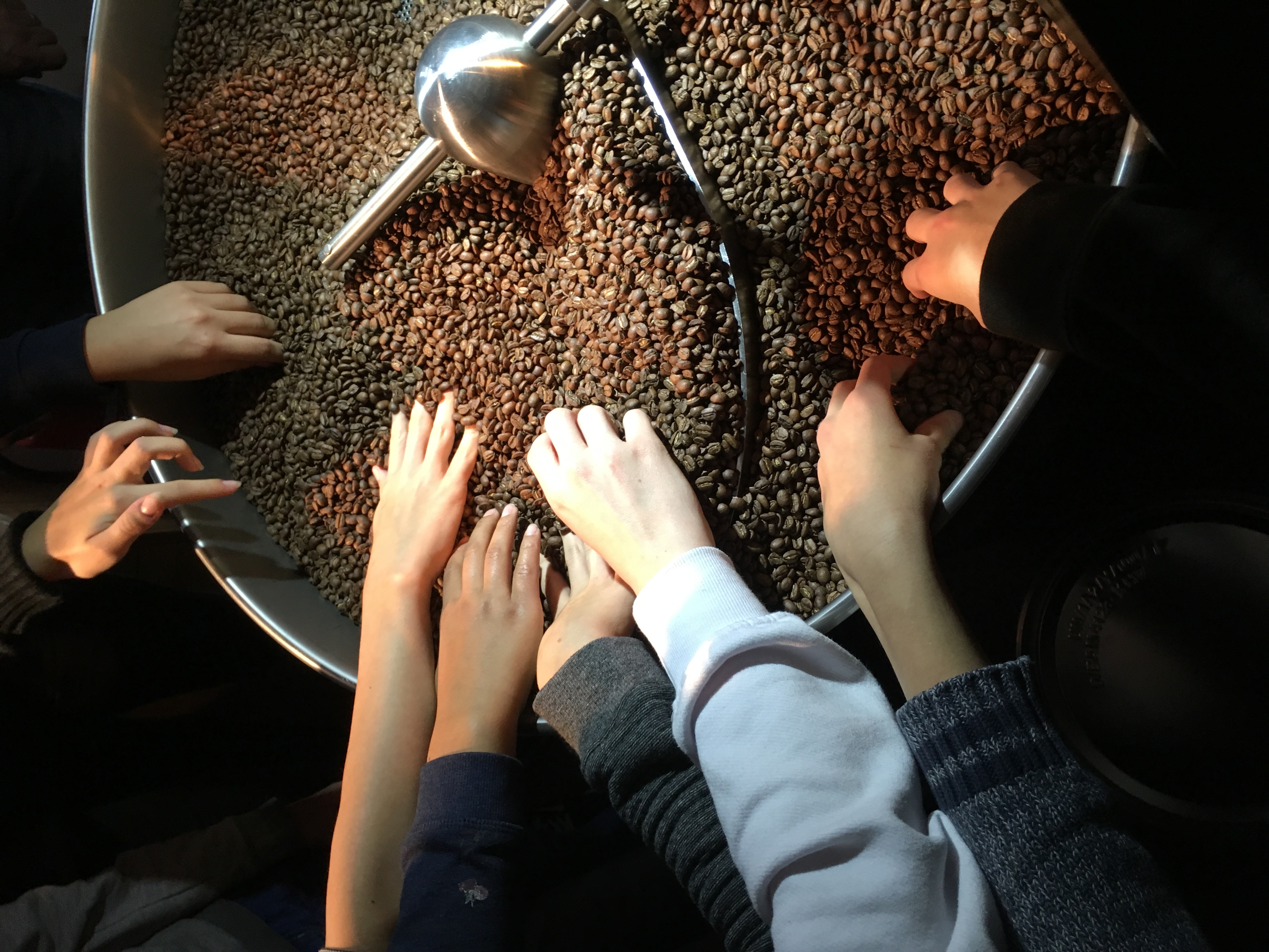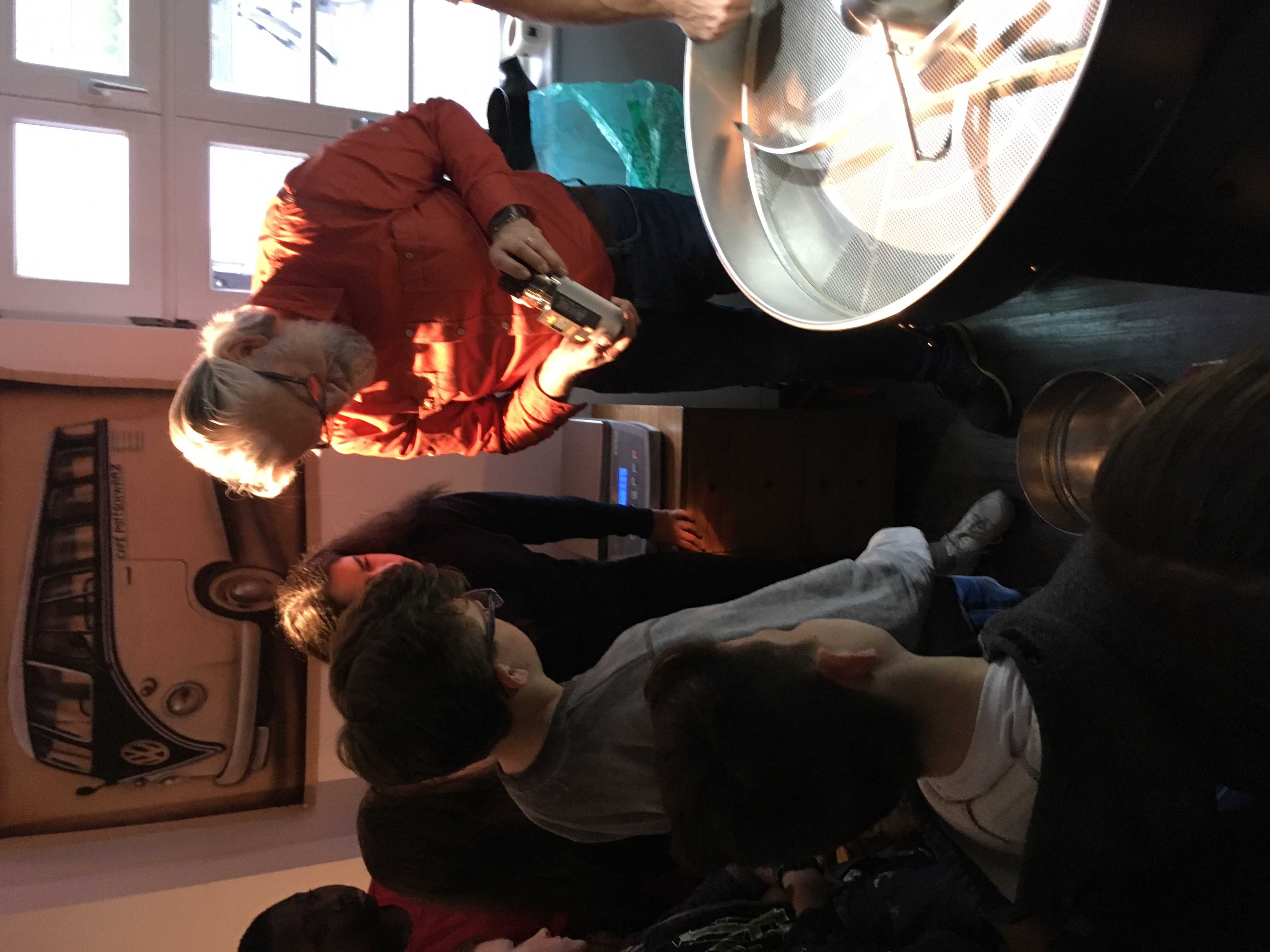 Bevor es an die eigentliche Arbeit ging hat Herr Kraus unseren SchülerInnen erstmal an zwei Nachmittagen viel über Kaffee erzählt. Sie erfuhren einiges über Anbaugebiete und Produktion. Das spannendste war jedoch als es an das Rösten ging.