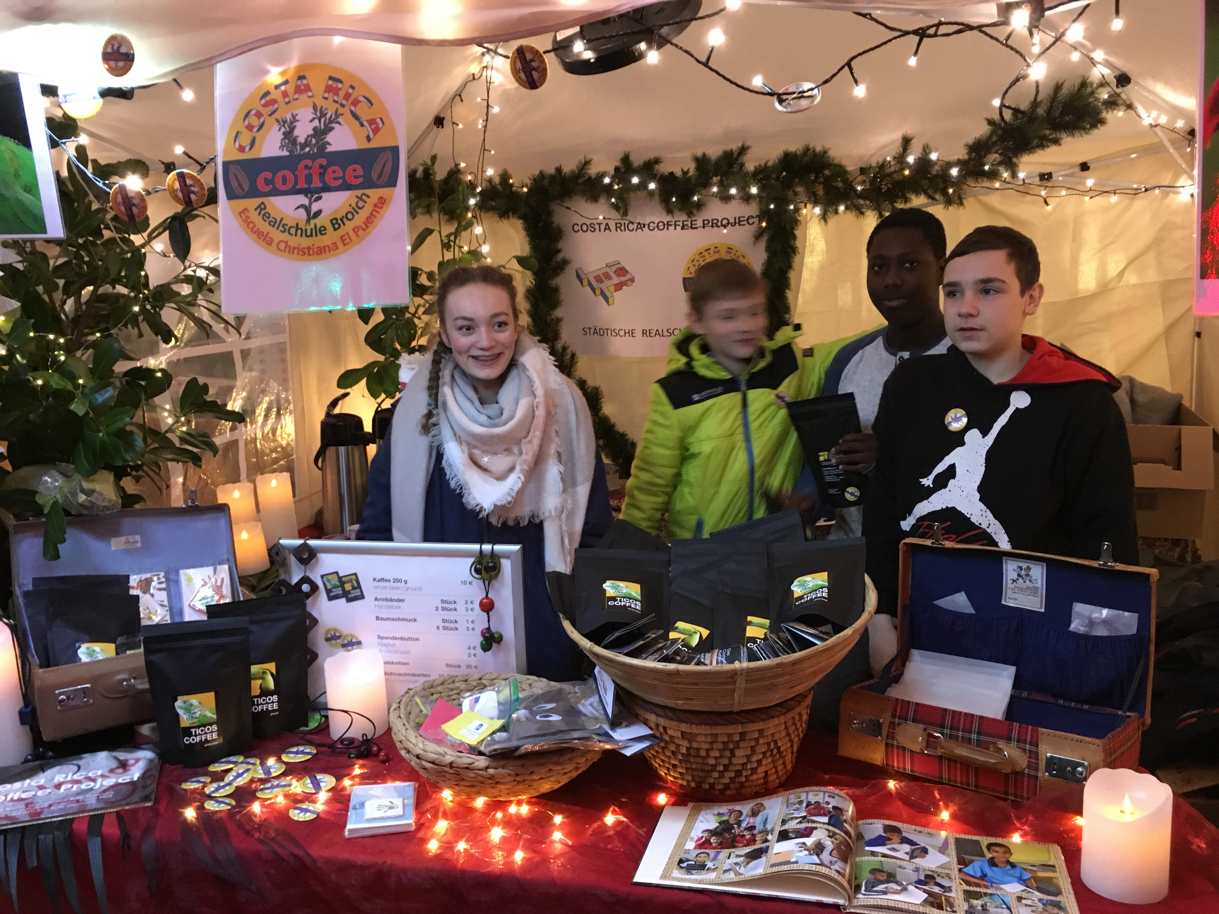 Durch den Verkauf des Kaffees und der Weihnachtskarten und Buttons auf dem Nikolausmarkt sowie in der Schule in den Pausen konnten wir insgesamt 4.000 USD an die Schule in Quepos spenden.