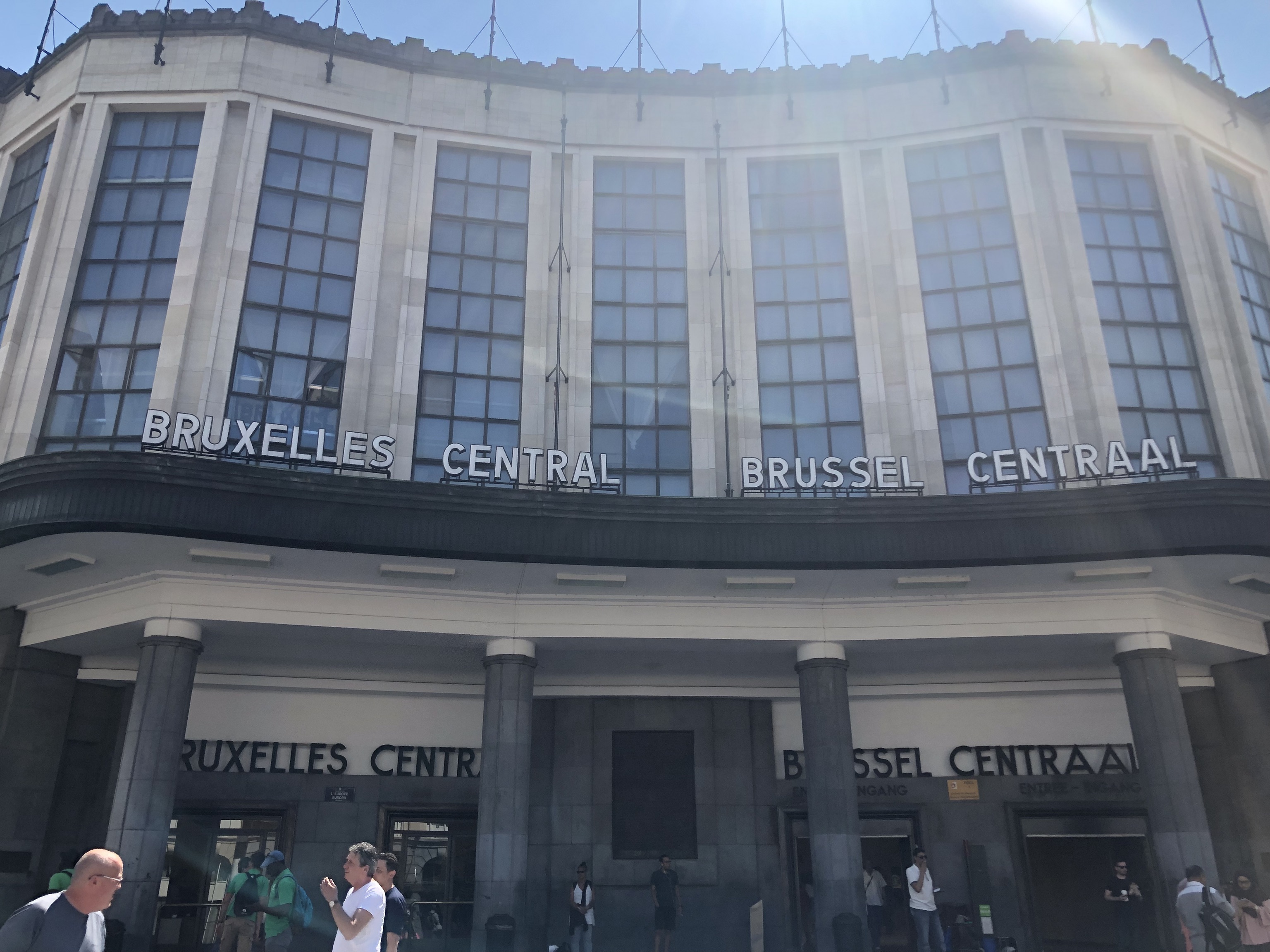 At 1208 local time we're pulling into Bruxelles. Zuid and Midi are the same thing apparently, and we go from there one stop to Central where we find a load of left luggage lockers. A bit of rowdy Tetris and 10 euros or so later, we're largely baggage free and able to go get something to eat and drink, because that's a good idea right.