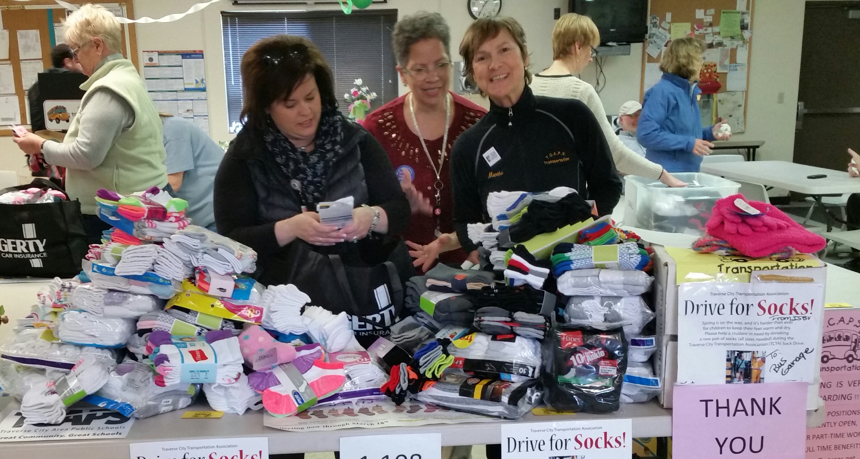 Later, sitting in her supervisor’s office crying about the incident, Alvarez was struck by a thought. The next day, she asked all of the kids on the bus if they wanted some warm socks to wear. When five or six hands shot up, the Traverse City Transportation Association’s “Warm Toes Sock Drive” was born.