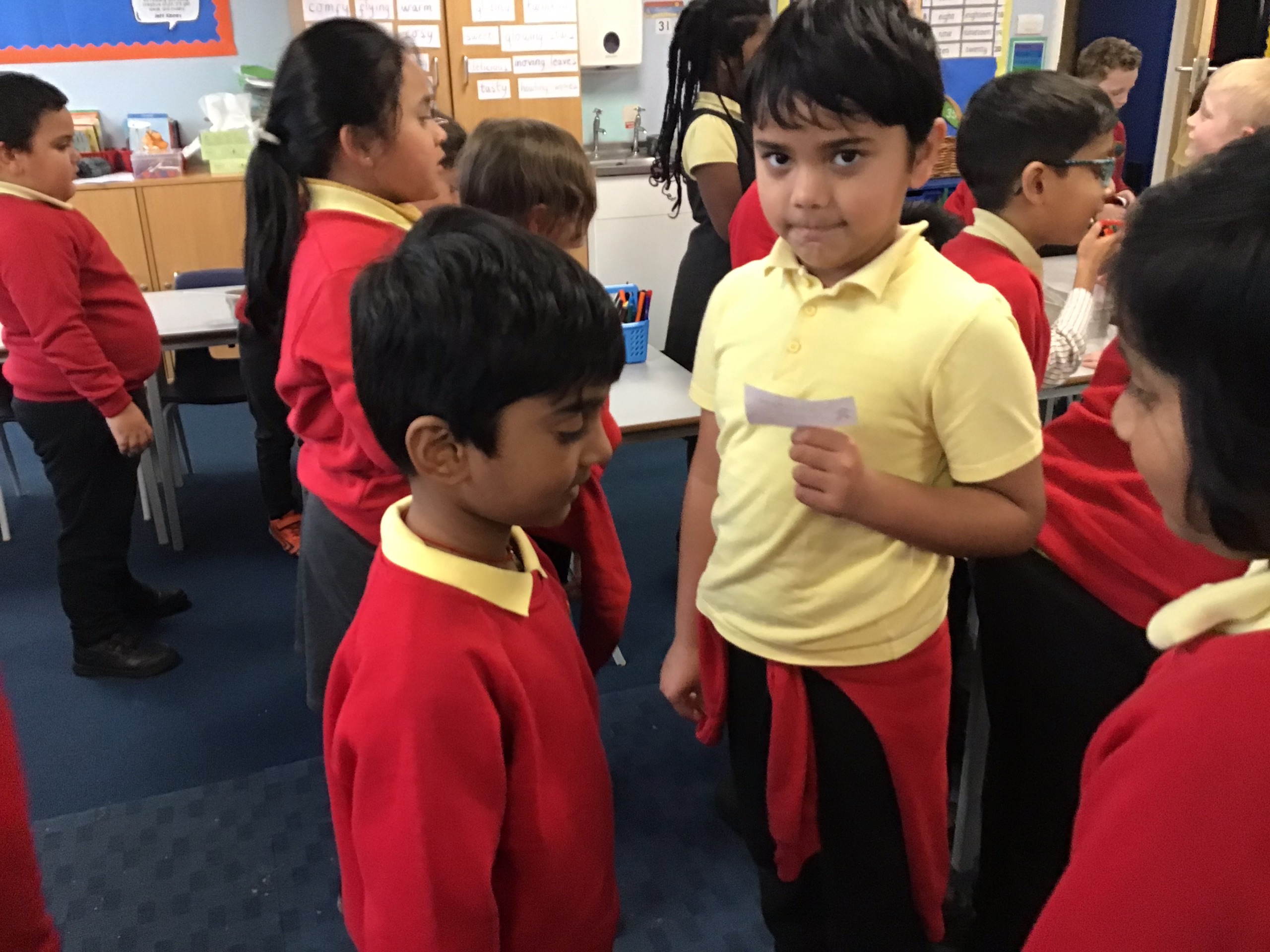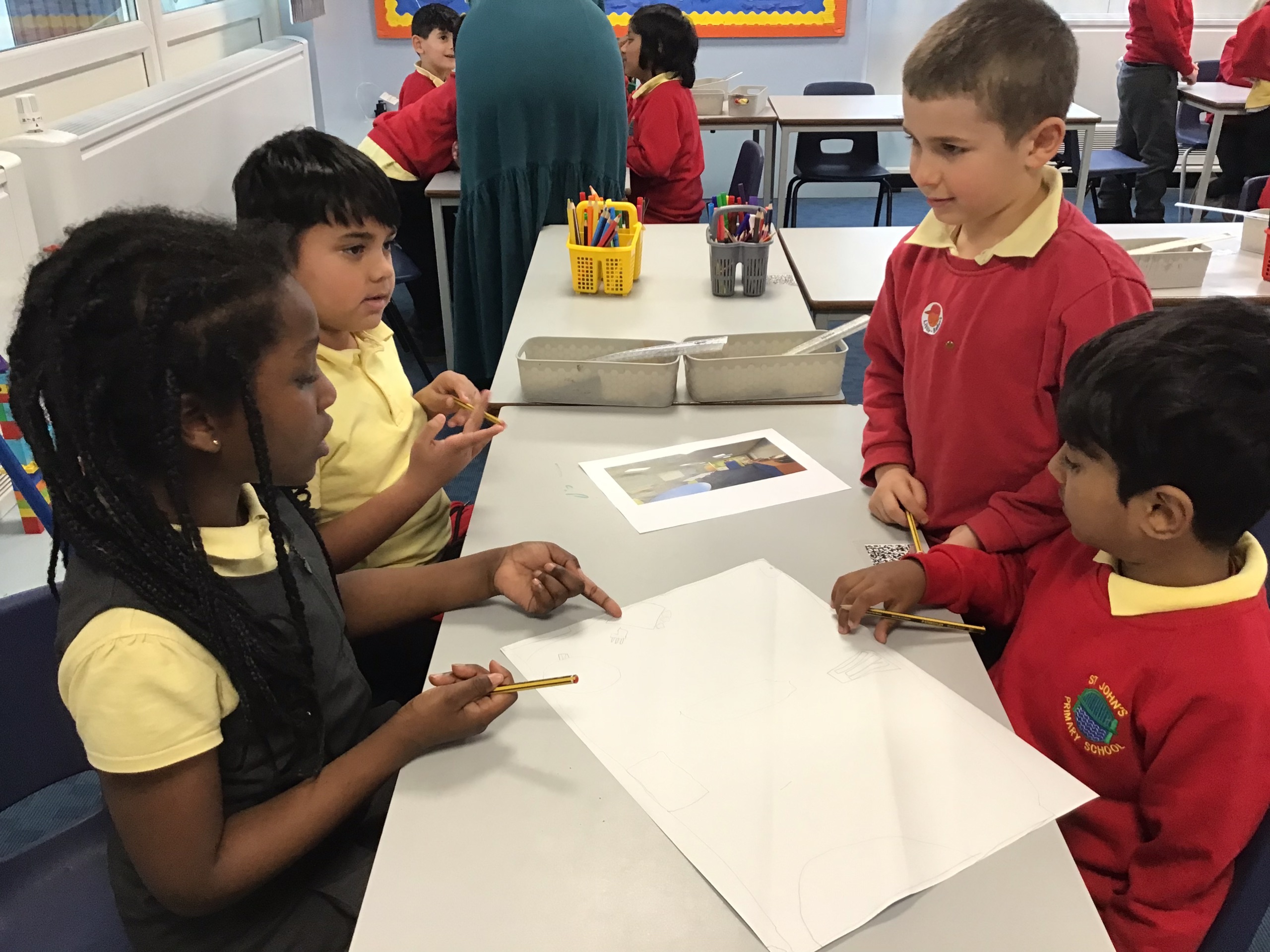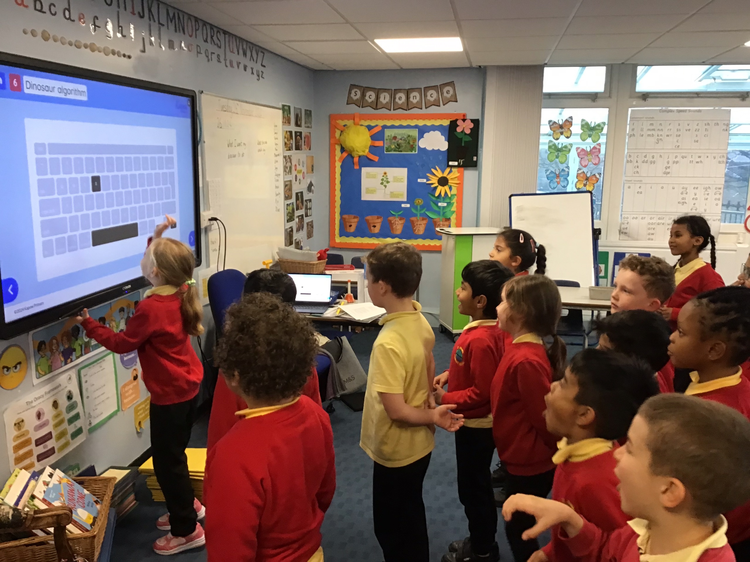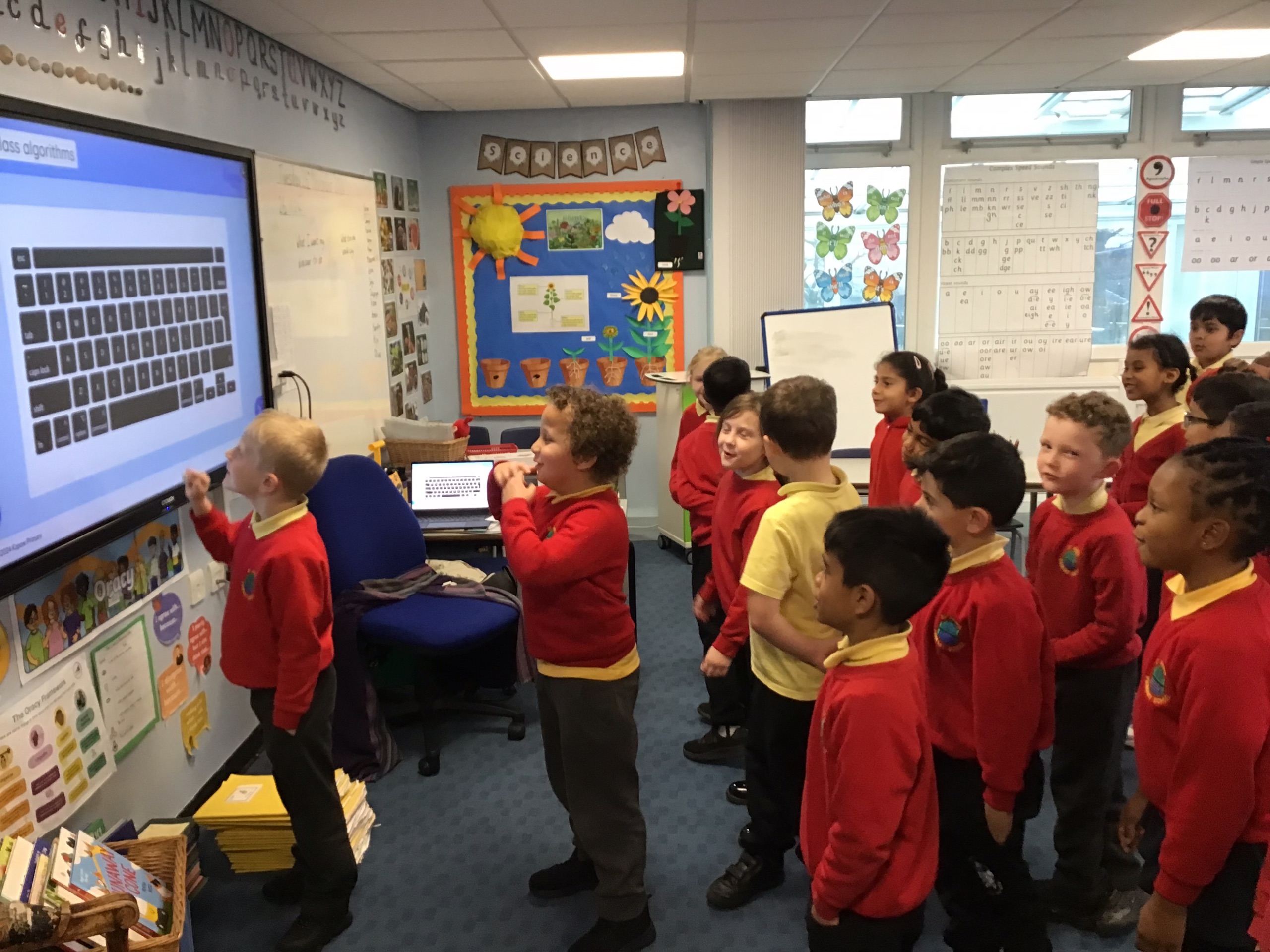 Working in small groups, the children explored different algorithms. Examples of these were drinking water from a bottle, putting on a coat and gluing a picture into a book. They loved this activity and put their heads together to see if they could make any of the instructions clearer or more efficient. This teamwork helped them understand that in the real world, programmers often need to review and refine their algorithms to make them better.