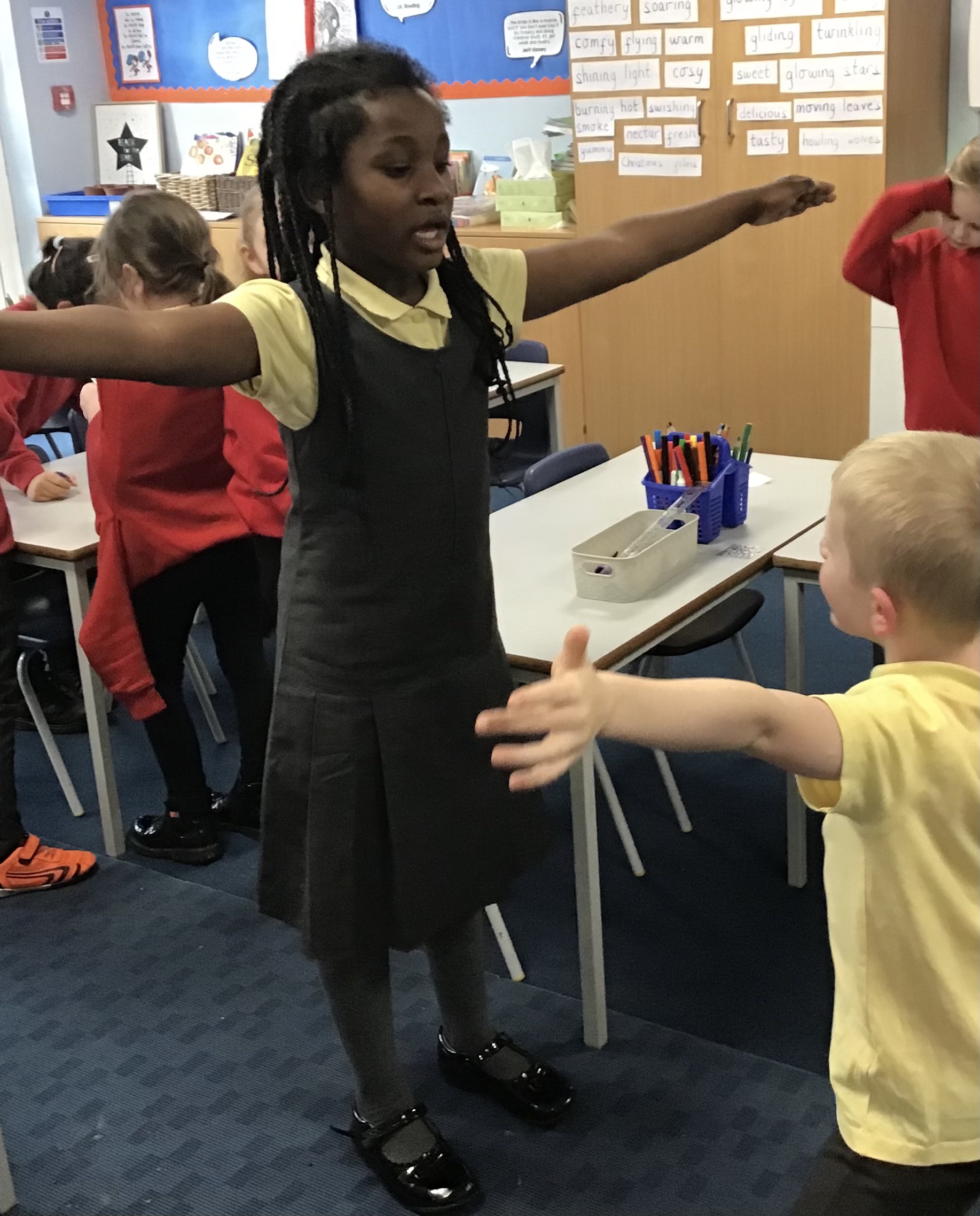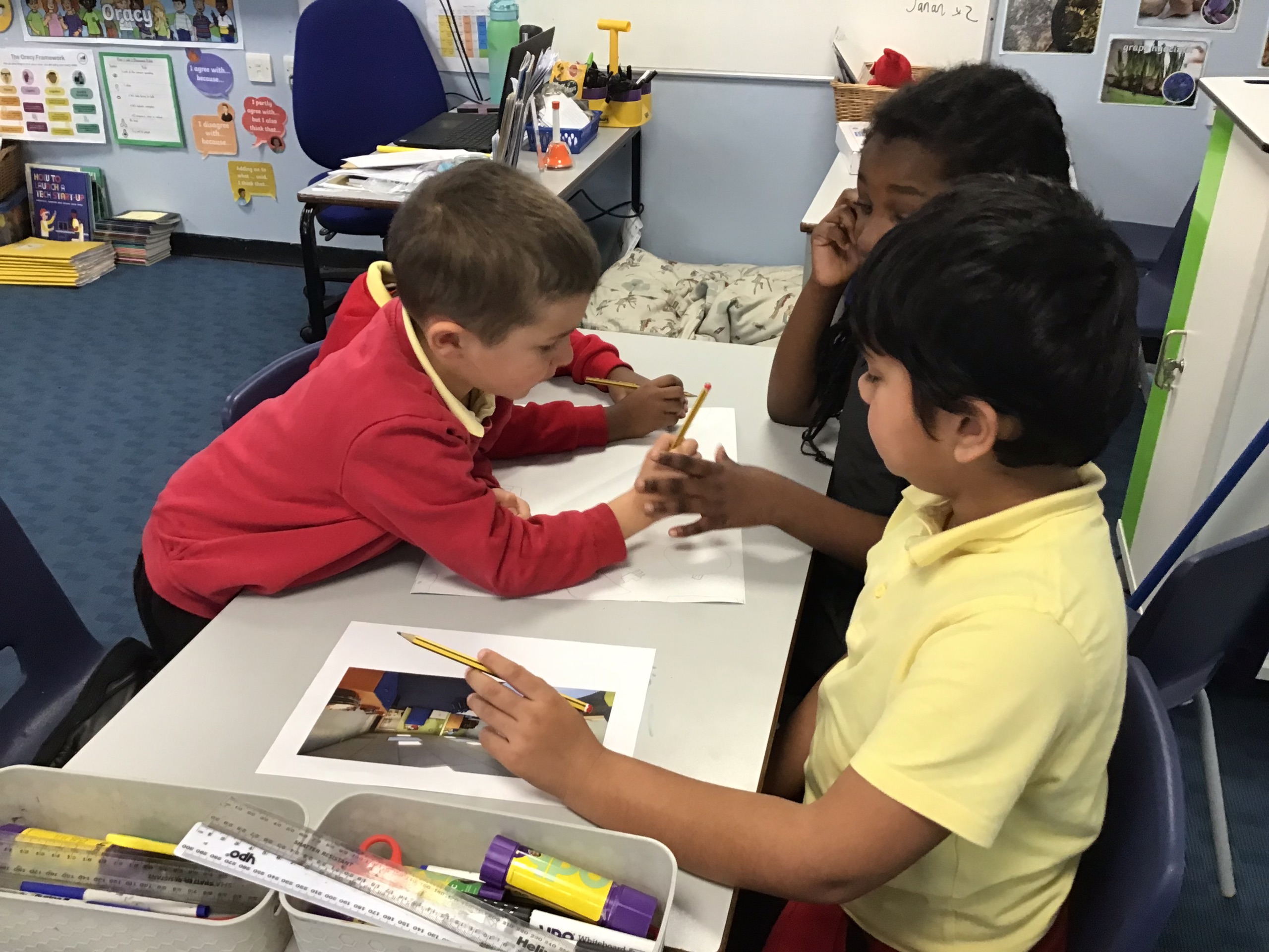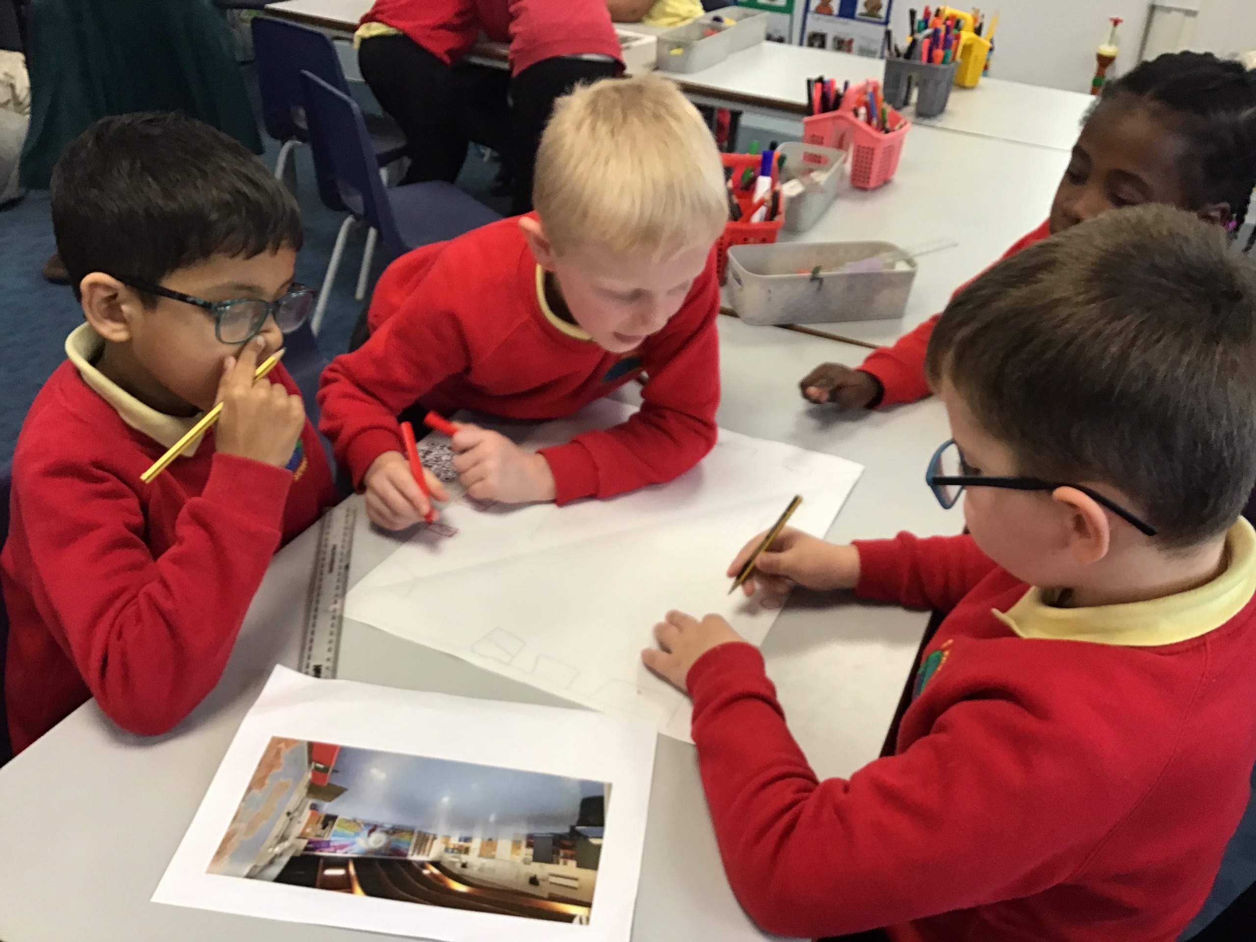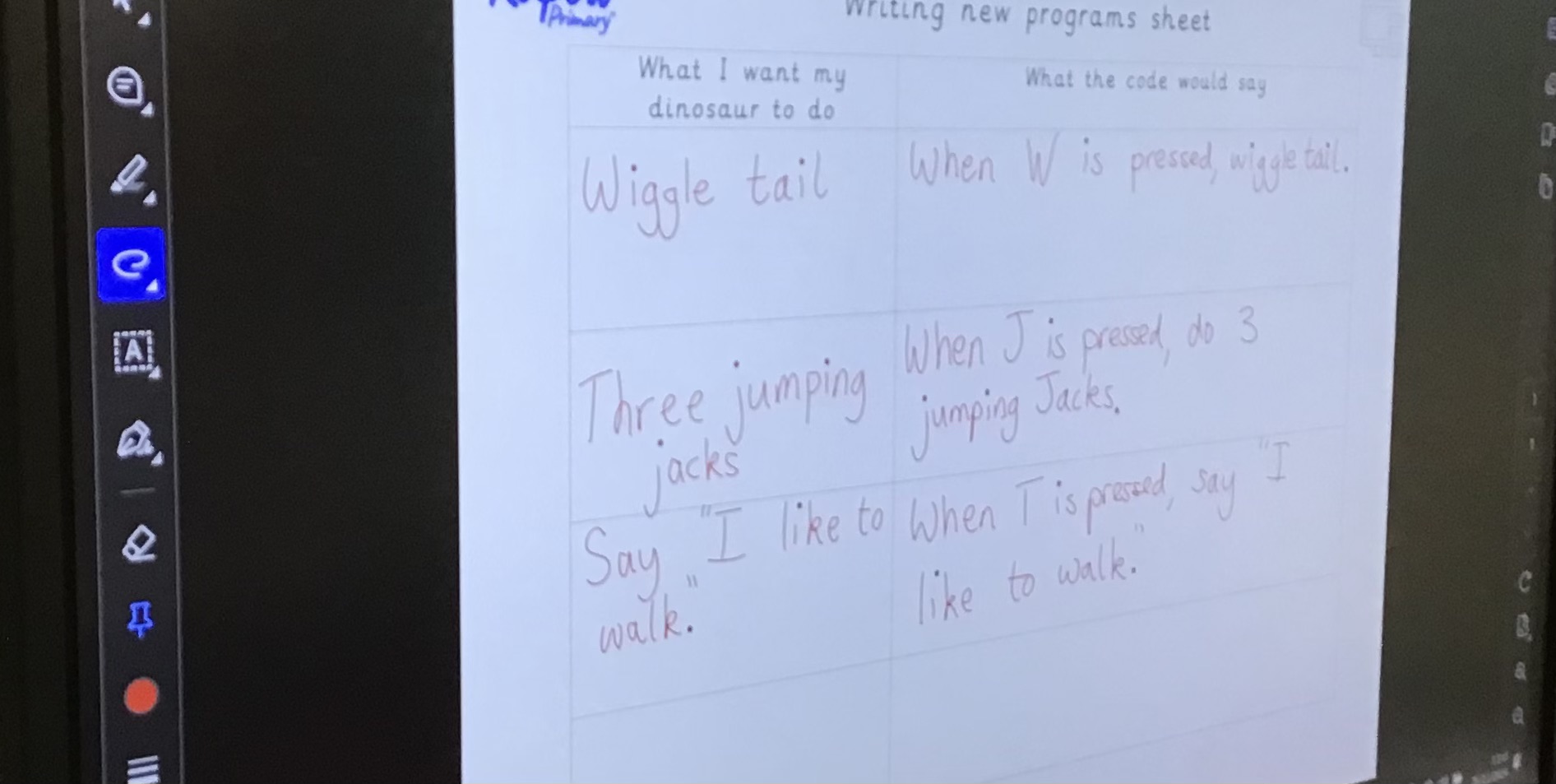 Working in small groups, the children explored different algorithms. Examples of these were drinking water from a bottle, putting on a coat and gluing a picture into a book. They loved this activity and put their heads together to see if they could make any of the instructions clearer or more efficient. This teamwork helped them understand that in the real world, programmers often need to review and refine their algorithms to make them better.