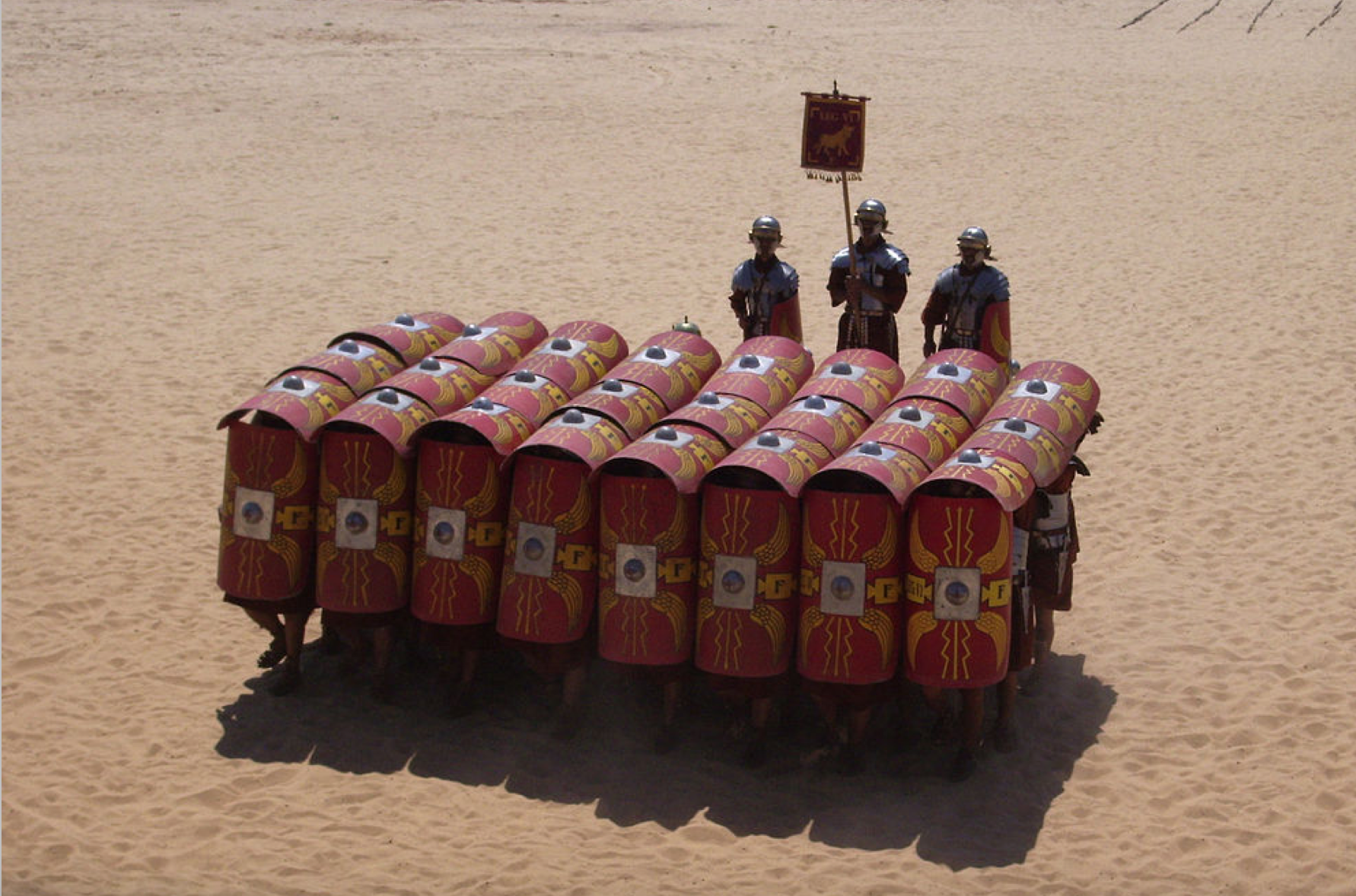 The legionaries then formed the Testudo Formation, in which they locked their shields together to present a nearly impenetrable front to missiles. However, this formation severely restricted their ability to fight in combat. The Parthian cataphracts exploited this weakness and repeatedly charged the Roman line, causing panic and inflicting heavy casualties.