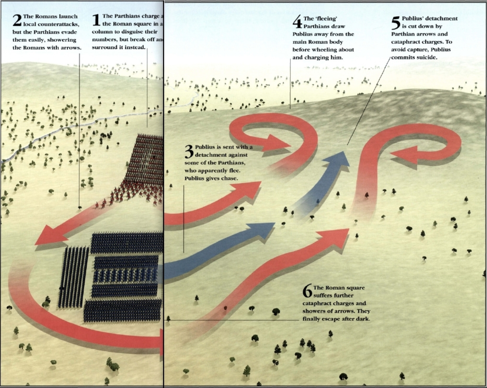 Crassus' generals advised him to make camp, and attack the next morning in order to give his men a chance to rest. Publius, however, was eager to fight and managed to convince Crassus to confront the Parthians immediately.