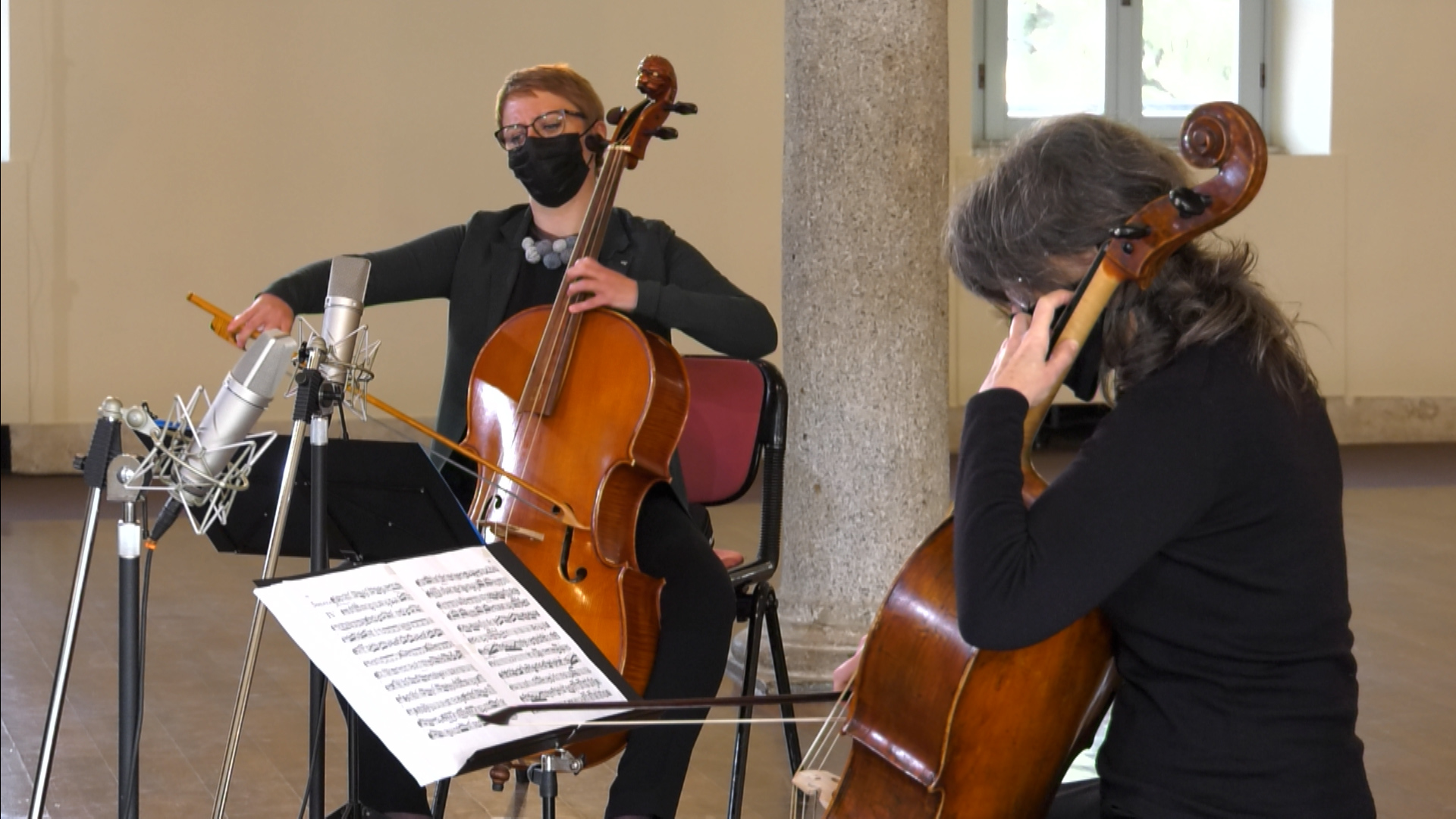 Ora di questo si parla. E non pensiate che sia solo competizione tra i due violoncelli. Parliamo di competizione con i violini! La sonata di Handel in programma è originariamente scritta per due violini e basso continuo. Le nostre violoncelliste non temono di spingersi in alto sulla tastiera, là dove si spingerebbero i violini, e ne cavano suoni ora teneri ora stentorei, colori emozionanti, luci e ombre che chiudono con un tripudio di energia il concerto di oggi.