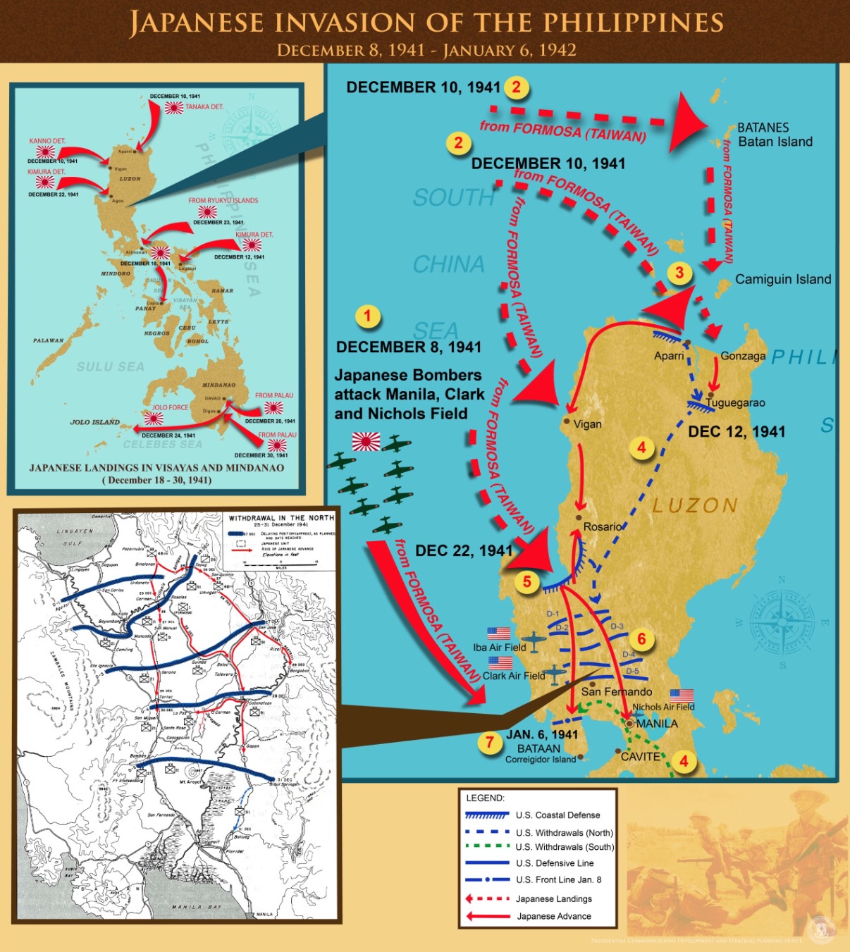 The Japanese Occupation of the Philippines began on the 8th of December 1941 just nine-ten hours after the attack of Pearl Harbor. Japan then launched an attack on the Philippine Commonwealth using aerial bombardment followed by landings of troops both north and south of Manila, Philippines' Capital. The Philippines was occupied by the Japanese and suffered severely for over three years until the surrender of Japan in 1945.